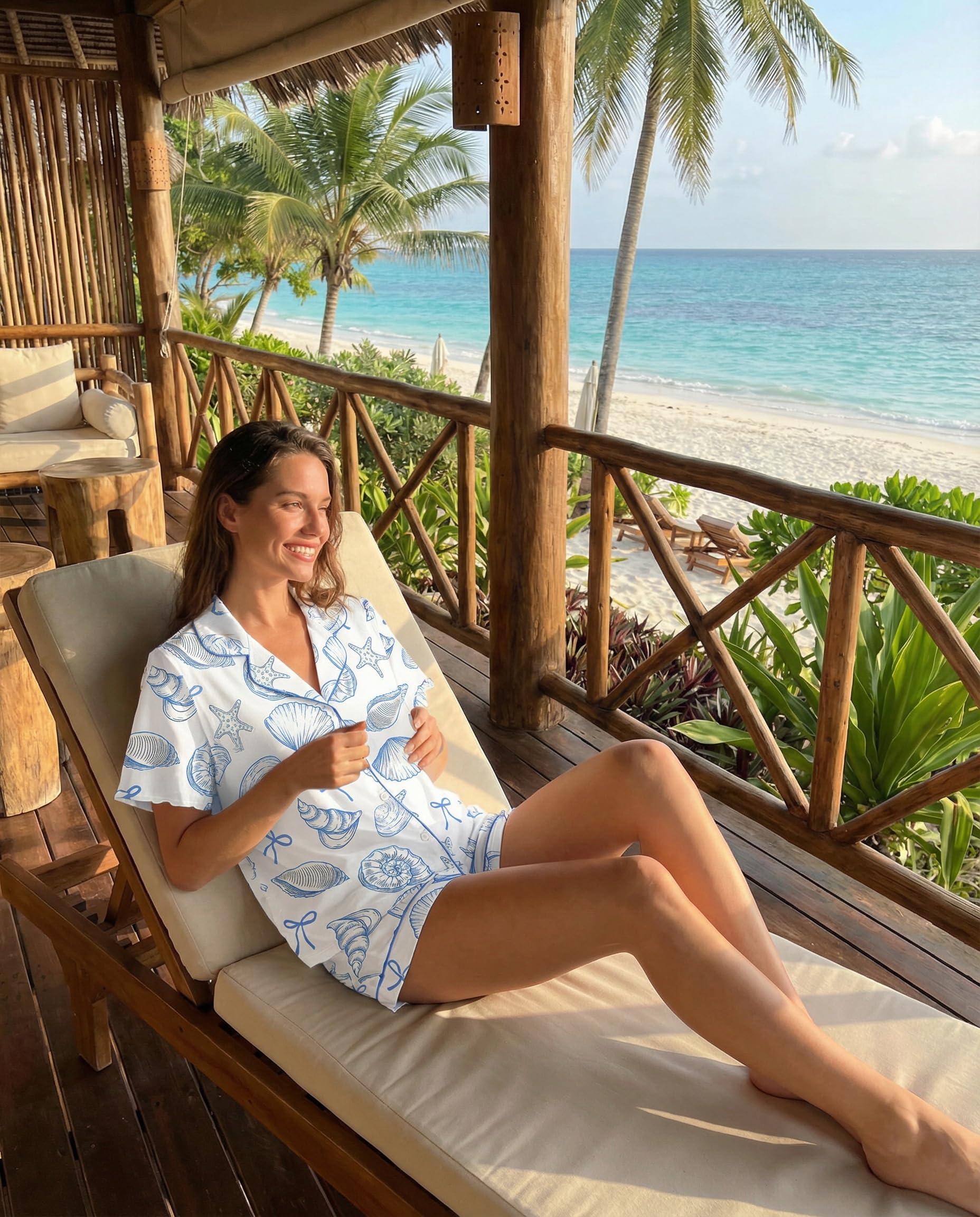 【Thoughtful Design】This women's pajama set features a short sleeve button-down top that falls at the hip, with a stylish notch collar. The shorts come with an adjustable drawstring elastic waistband for a custom fit, plus two convenient side pockets for small essentials.