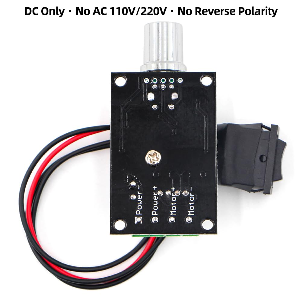 Critical Safety & Usage Restrictions:Designed exclusively for DC power sources: never connect to 110V/220V AC household power, and do not reverse positive/negative power connections (both actions will cause permanent damage). This controller is for low-voltage brushed DC motors only, with a maximum load current of 3A—avoid use with high-current motors (e.g., 775 motors).