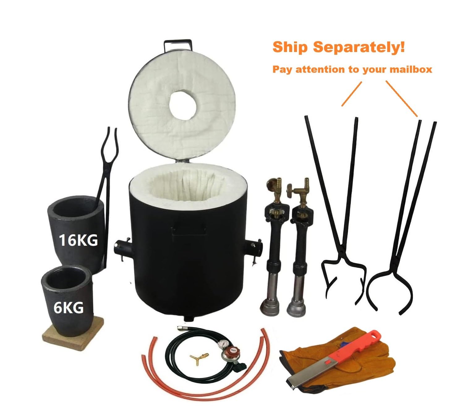 【What You Will Get】We are professional seller of smelters for metal full kit. If there is any problem, you could contact us directly. Package include: 1 propane smelting furnace, 2 graphite Crucibles(16KG&6KG), dual forge burners, 1.5m gas hose with regulator, 1 refractory firebrick, 3 heavy duty crucibles tongs, and other casting tools.