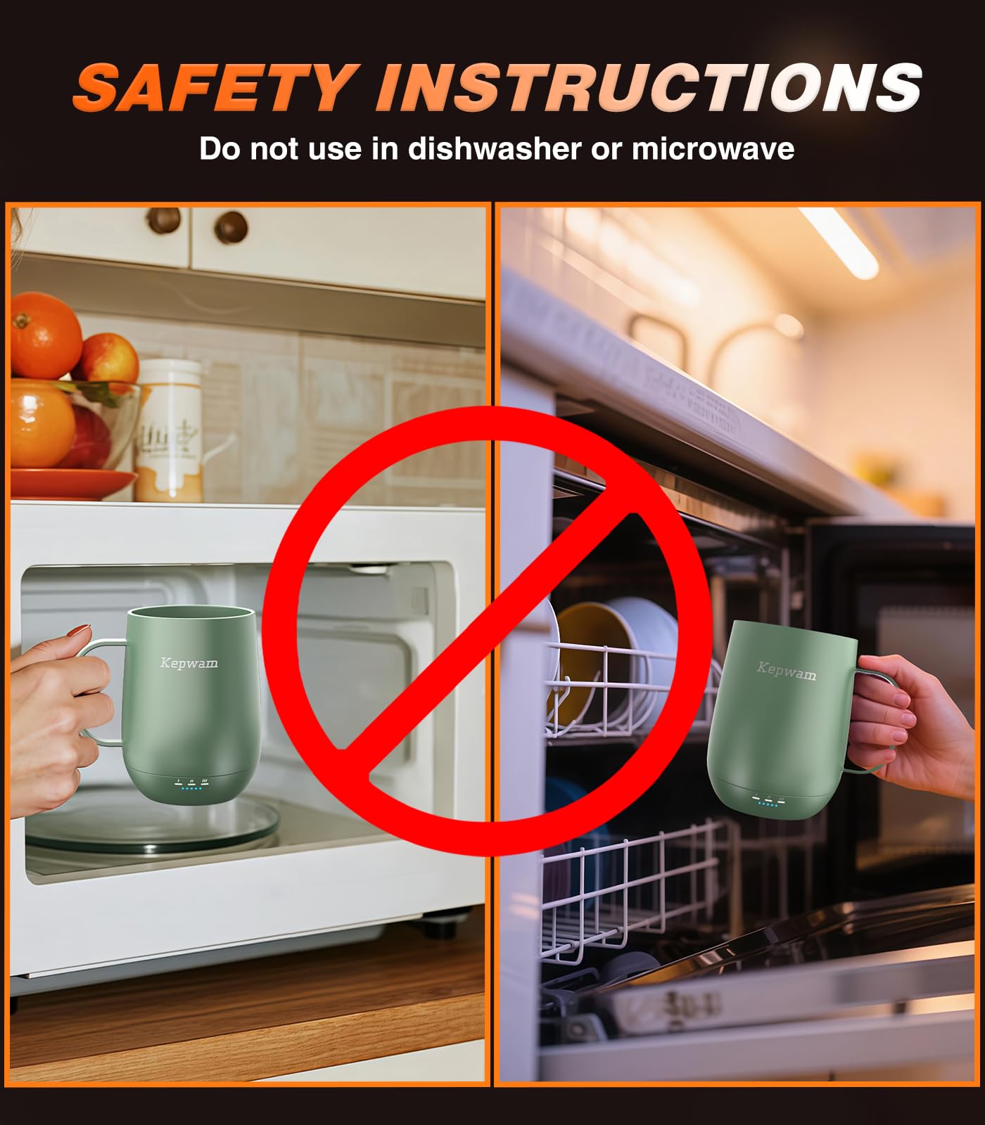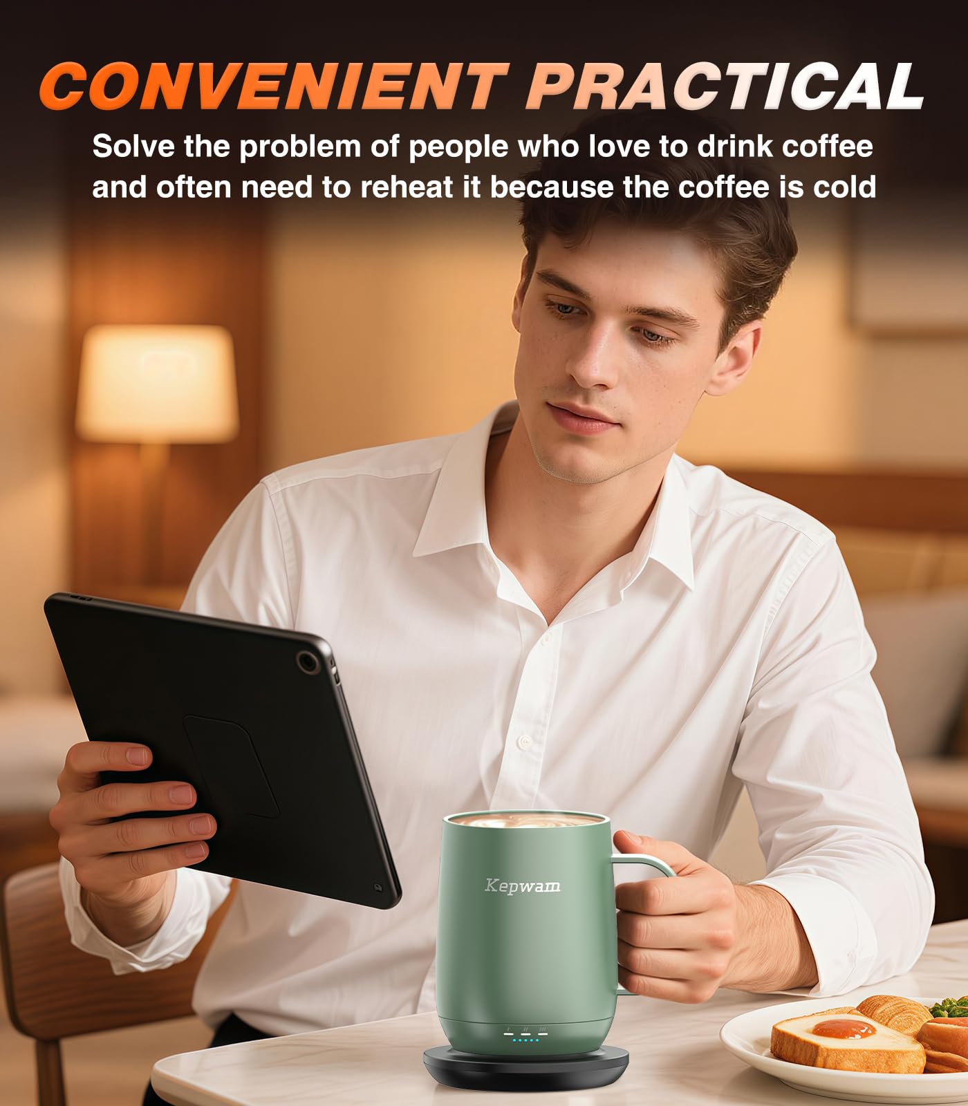 Temperature Control Mug: Chooses from three settings: warm (113°F), hot (131°F), or piping (149°F). Wherever you are, Kepwam keeps your hot coffee, tea, or preferred beverage at the perfect temperature for hours or all day. The included sliding lid keeps your drinks hotter longer while preventing spills