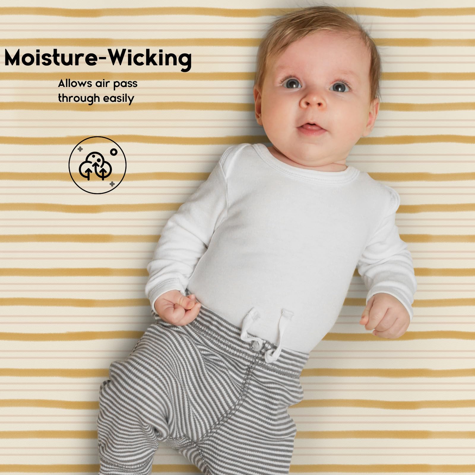 COZY AND BREATHABLE: Made from 95% microfiber & 5% spandex, our pack and play sheets are gentle and safe to touch, does not irritate baby's delicate skin. The breathable fabric also allows air to pass through easily and brings your baby a peaceful dream.