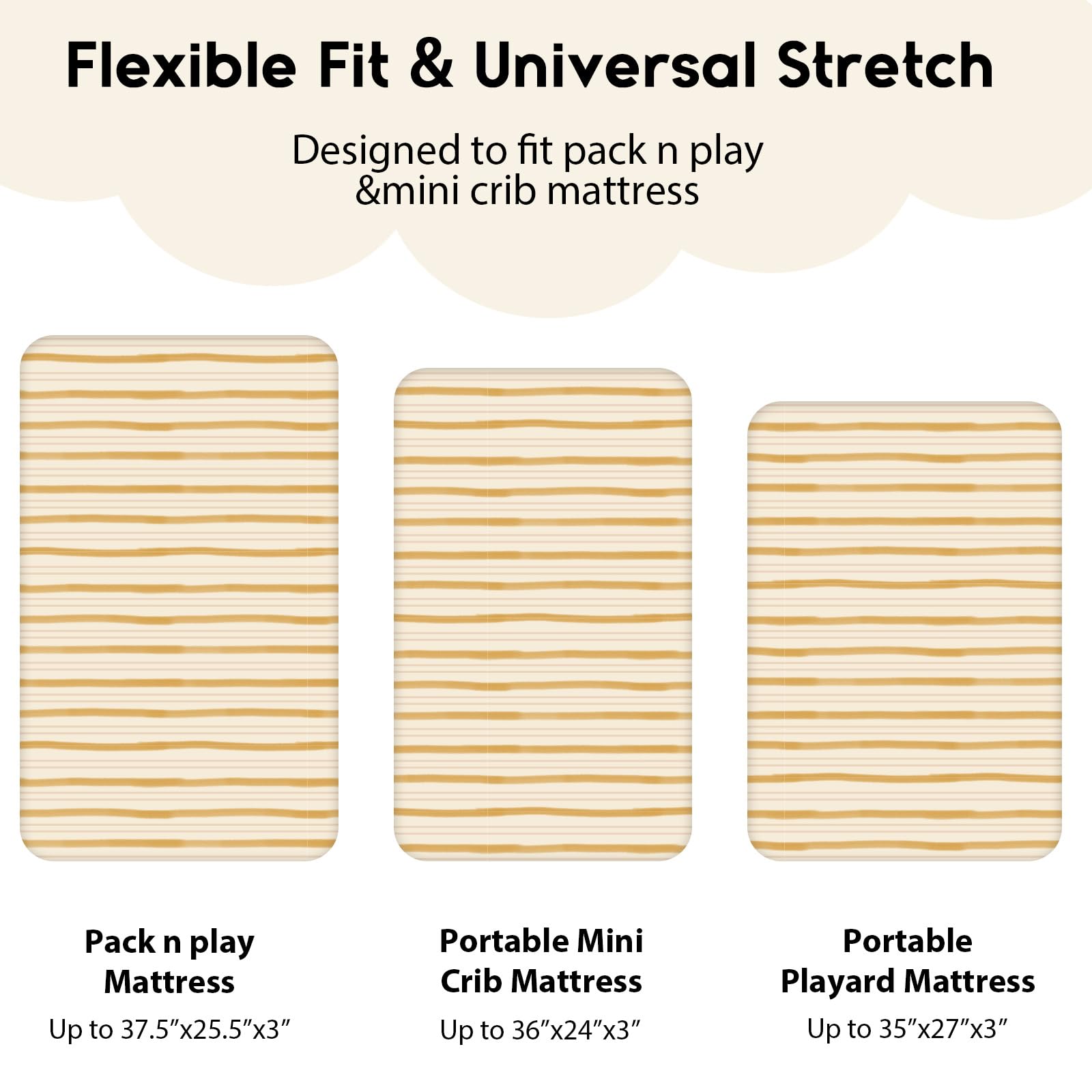 PERFECT FIT: Measured 38”X 26”, our mini crib sheets for playard can snug fit most pack n play mattresses, portable play pens, and mini crib mattresses. 5'' deep pocket provides a safe and secure 360 degree coverage and protection for your luxury mattress.
