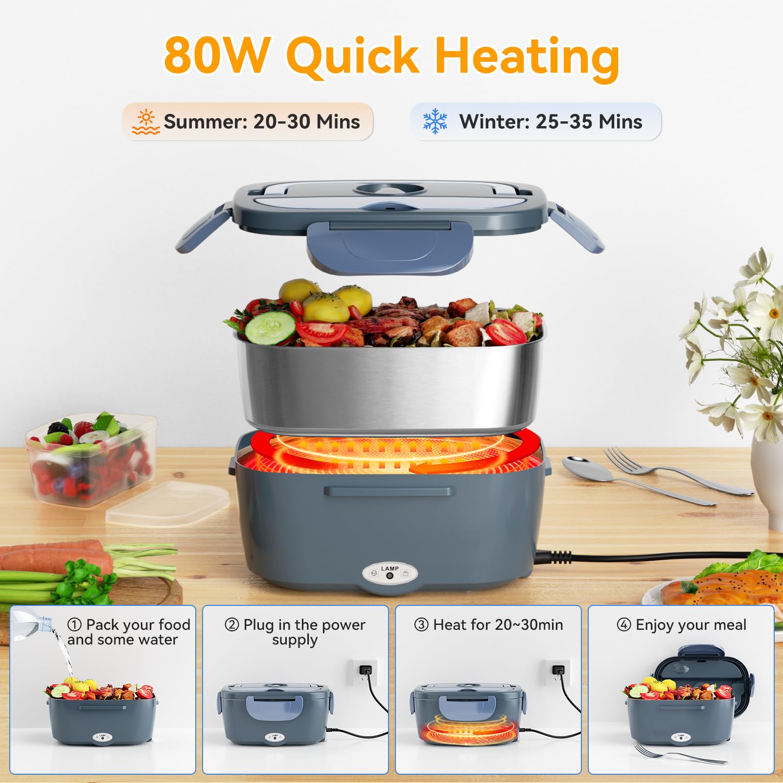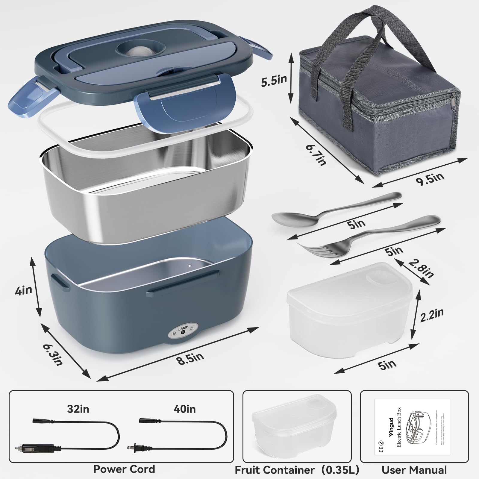 【 Rapid Up to 80W Heating 】 Vingud heated lunchbox for adults boasts a high-power system, ensuring quick and even food heating. Simply plug it in approximately 20-30 minutes before mealtime for self-heating convenience. Enjoy your delectable homemade meals whenever you like, without the need for a microwave oven. Pro tip: adding a bit of water to the food aids in the heating process.