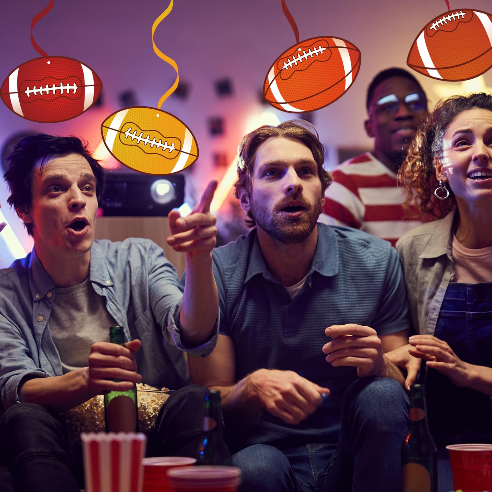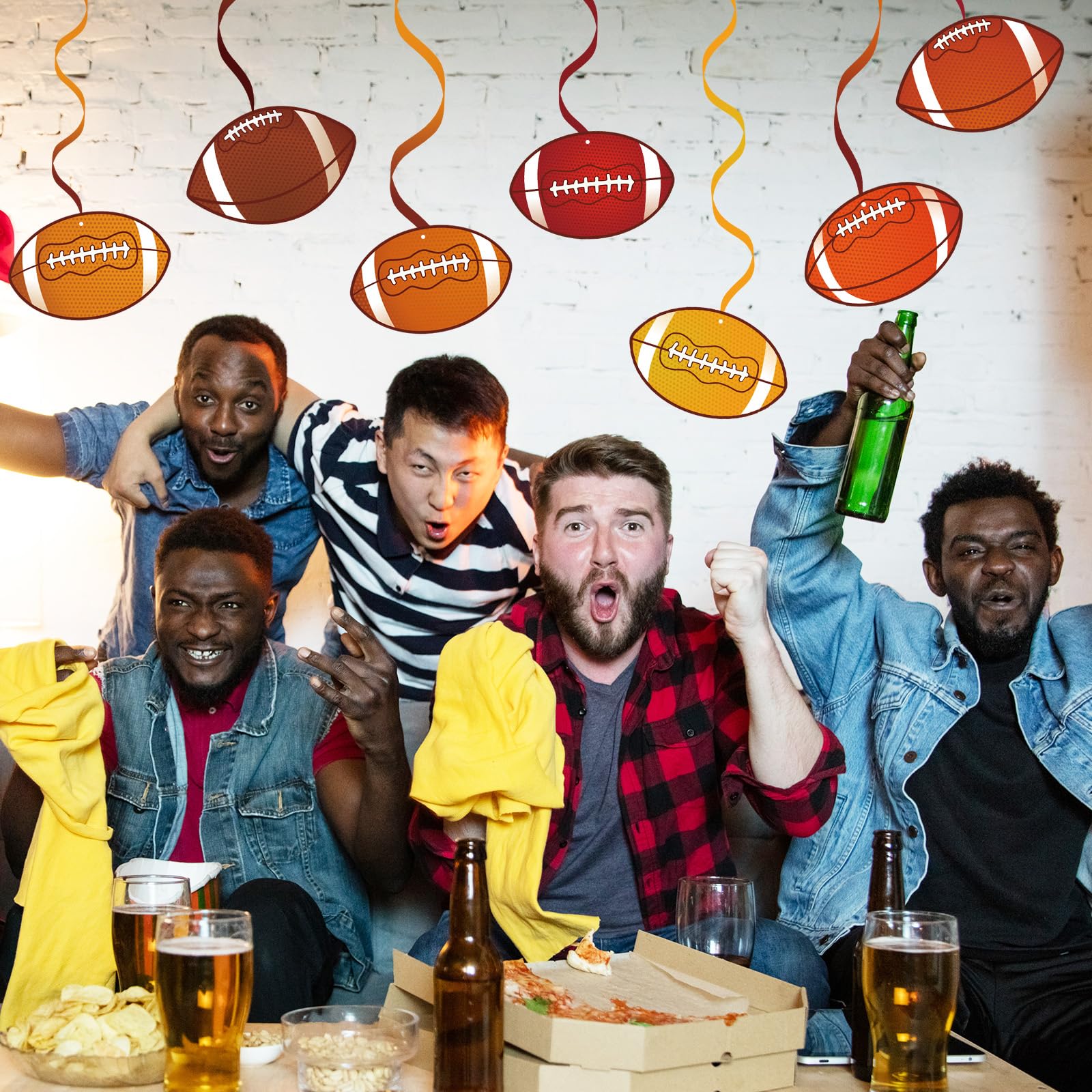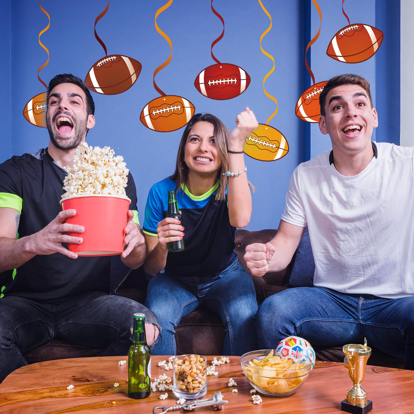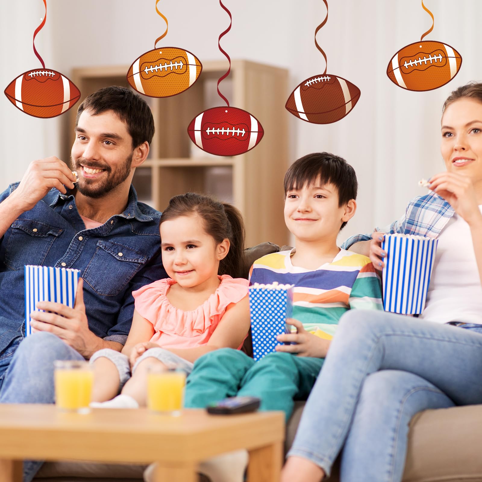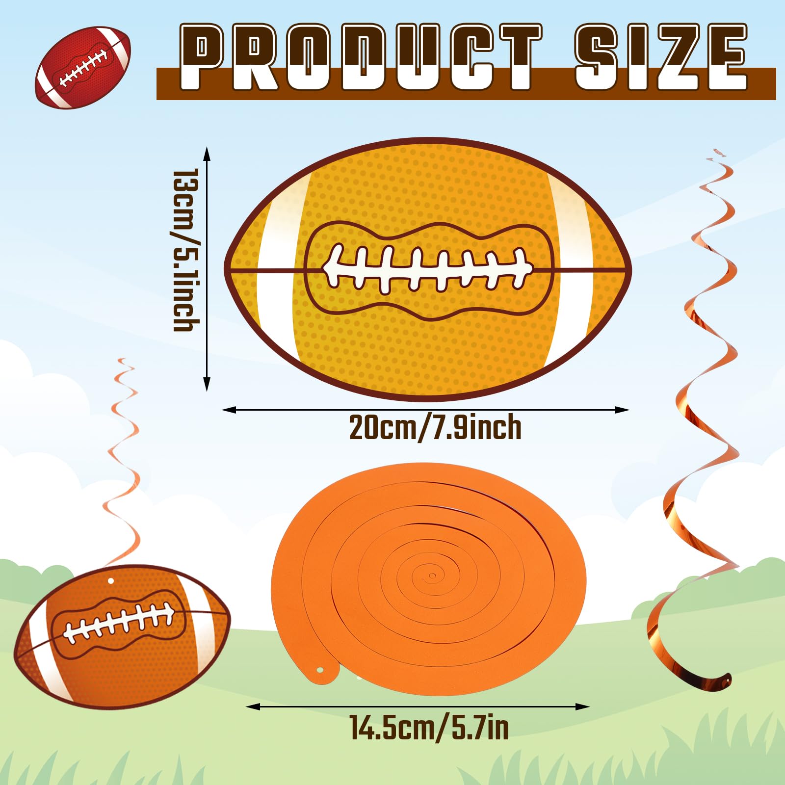 Wide Application - These party swirls decorations are great for football party, sport party, birthday, etc.; Each swirl comes with a plastic loop at the top, you can hang it on ceiling, window, mantel, doorway, archway, branches in trees, etc..