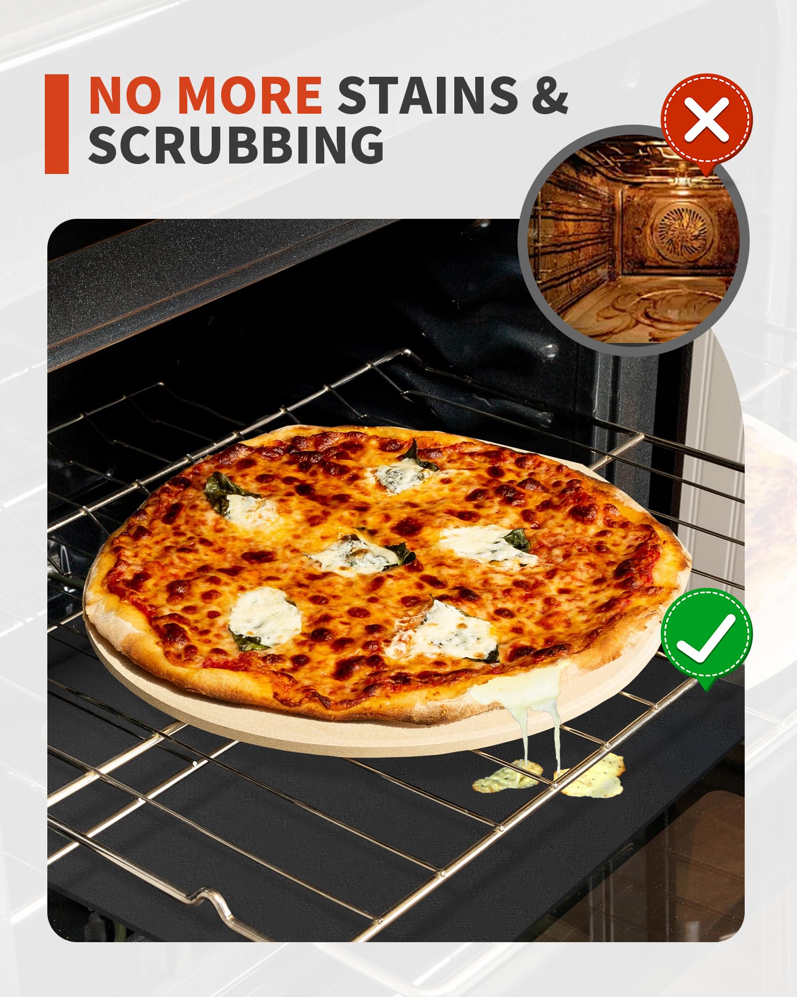 Protect Your Oven: Keep your oven spotless with our oven liners, designed to catch drips and spills. No more hard scrubbing! Just place it and forget about tough oven messes