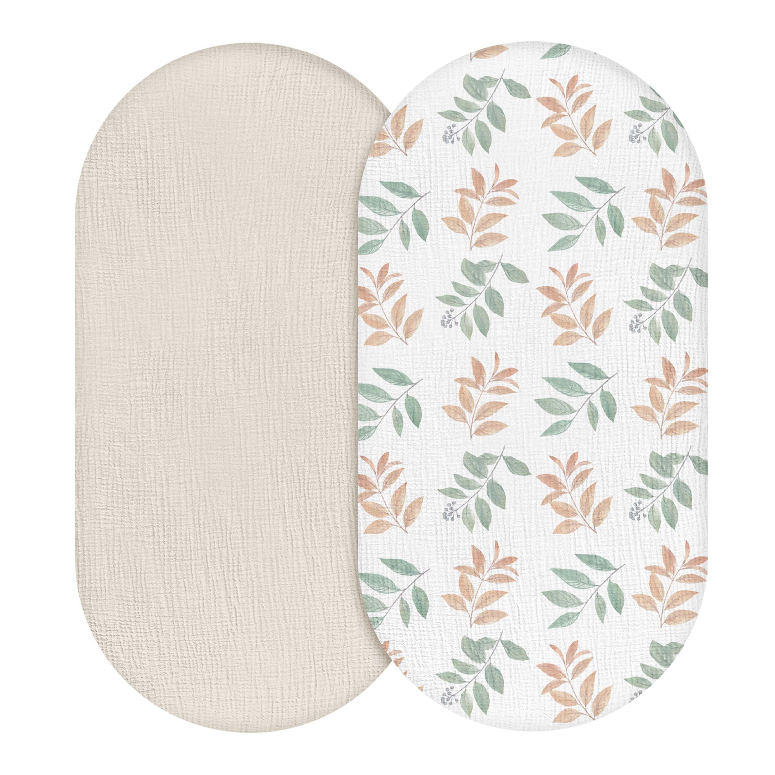 SET OF UNISEX COLORS: The package includes 2 different neutral color muslin bassinet sheets, suitable for baby boys or girls. Each piece with specifically classic prints and handpicked unisex colors that will easily match any outfit, suitable for both boys and girls!