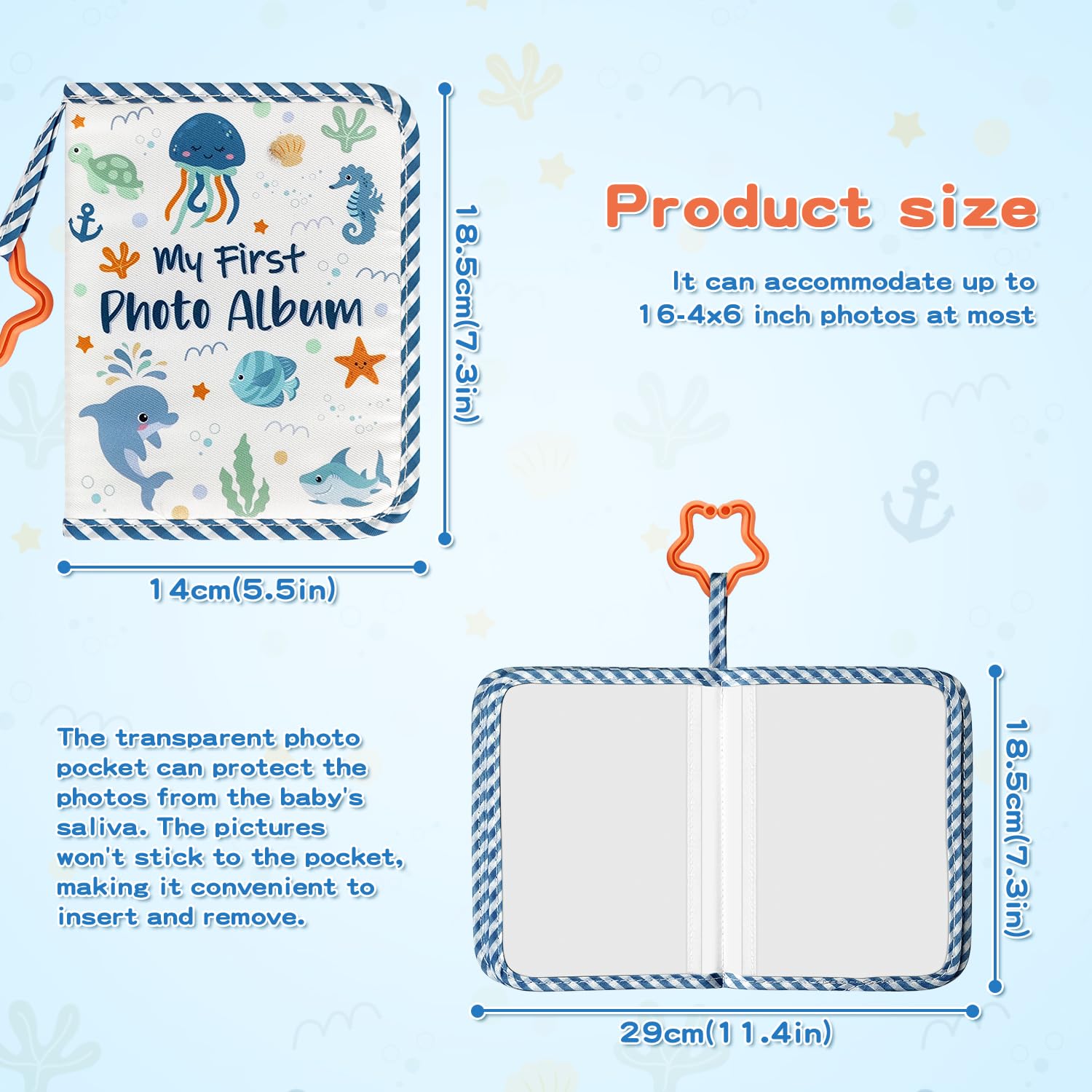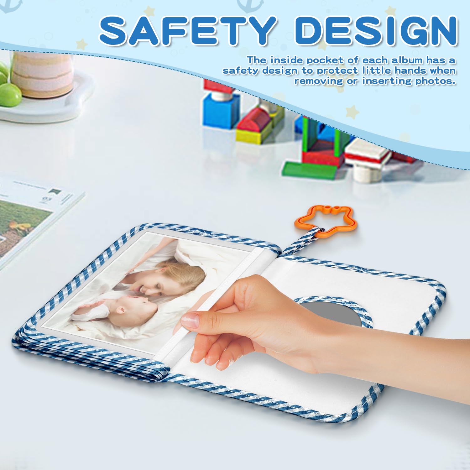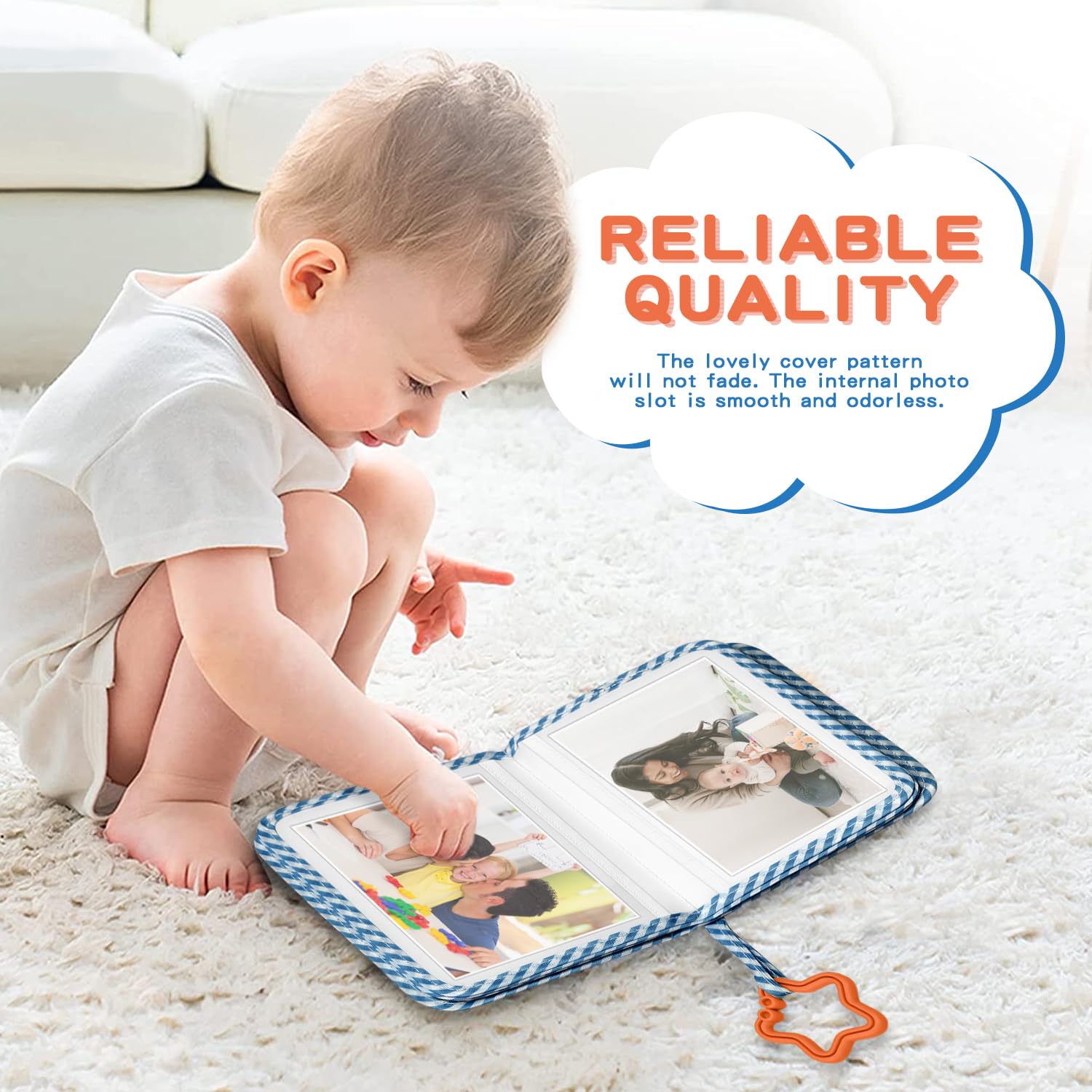 Premium Safe & Interactive Design: this 5.5"x7" cloth photo album safely holds 17 standard 4x6 photos. Features a shatterproof baby-safe mirror (with protective film removal reminder) – perfect for tiny hands to explore textures and recognize loved ones'faces.