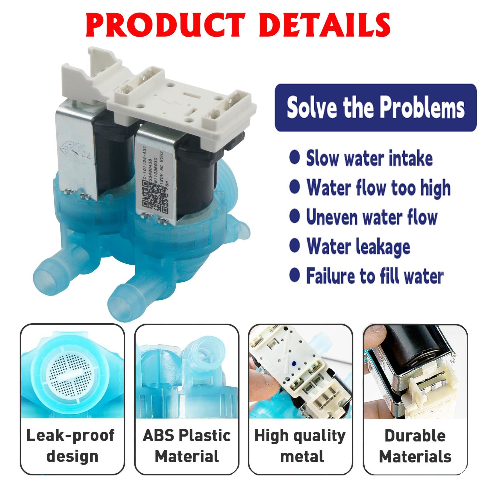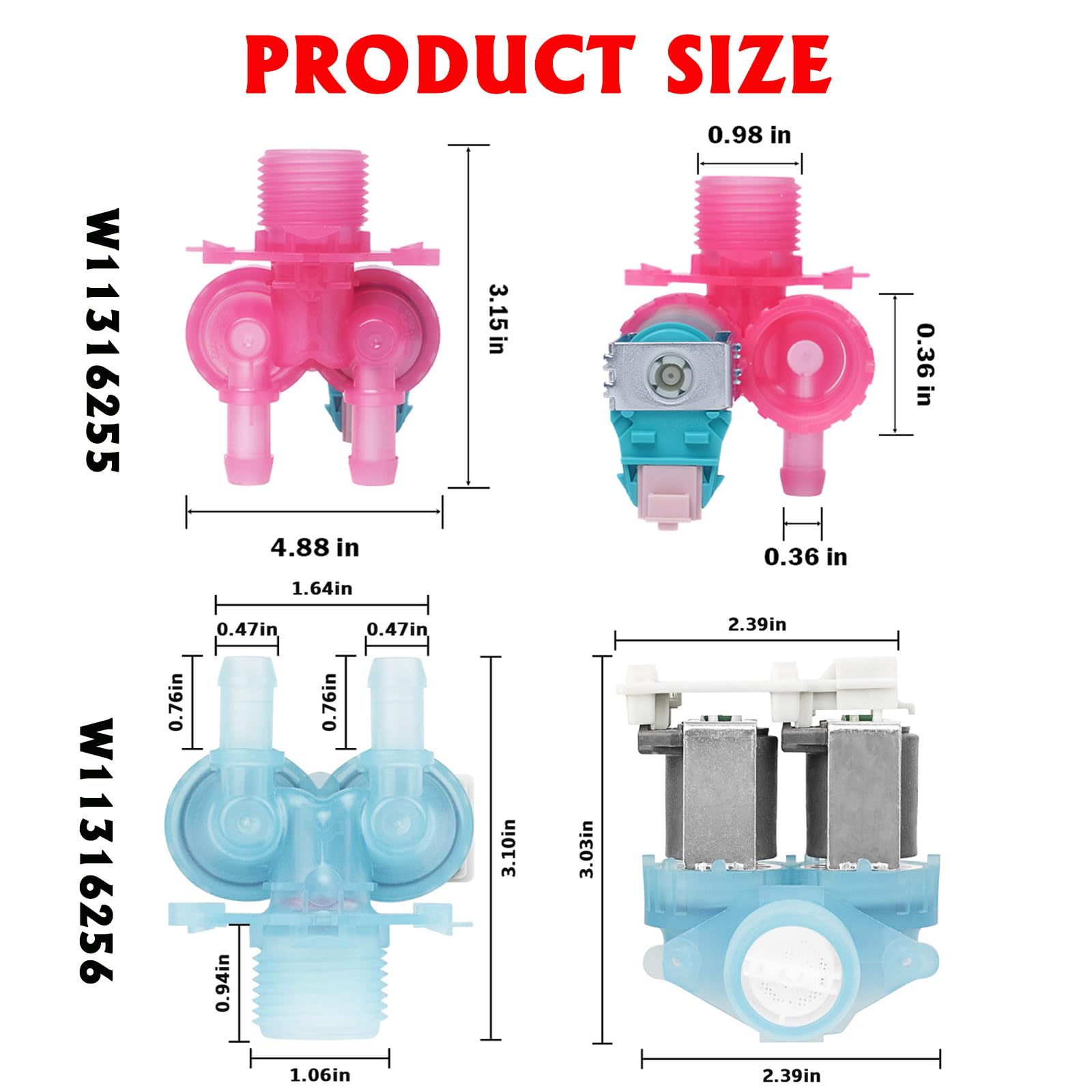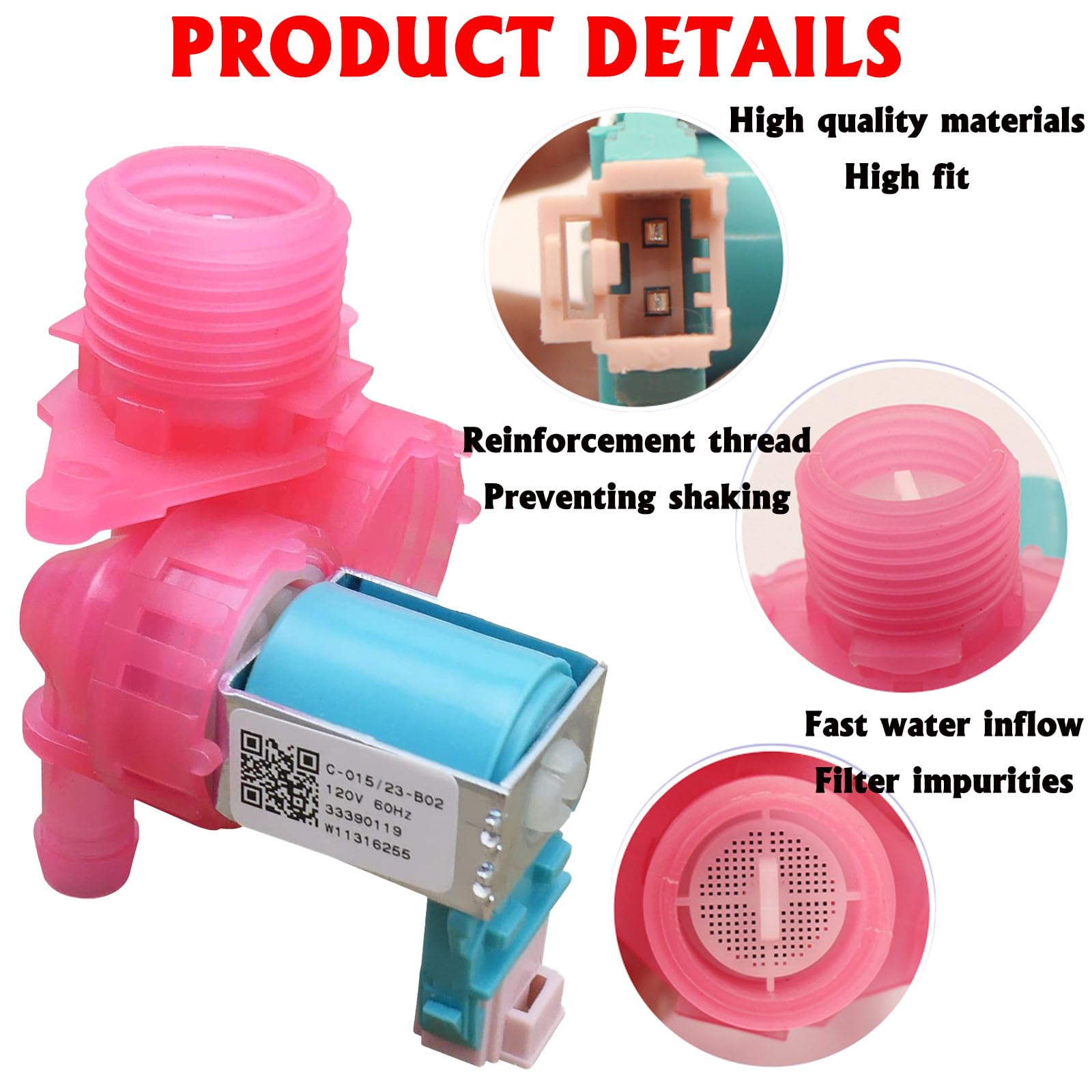 COMPATIBILITY: Direct replacement valve for Whirlpool, Maytag, and Amana washing machines, replacing part numbersW11036928 33490439 AP6835736 4922254 PS12711563 EAP12711563, W11104751 AP6835737 4929298 PS12711564 EAP12711564, and related models