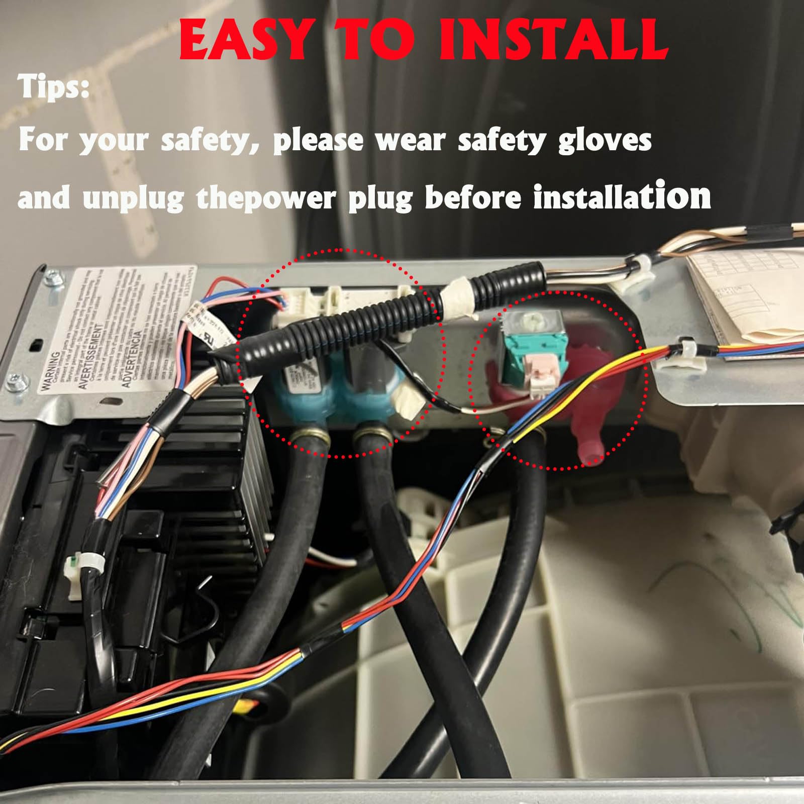 Keep your washing machine running smoothly with this replacement water inlet valve set designed for Whirlpool, Maytag, and Amana washing machines. ensuring a precise fit for compatible models. The valve set includes both hot and cold water inlets, featuring a durable construction with pink and blue color-coding for easy installation. Compatible with multiple model numbers including W11036928, 33490439, AP6835736, and 4922254, this replacement part is designed to restore proper water flow control to your washer. The valve assembly controls water flow into your washing machine during different cycle phases, helping maintain optimal water levels and temperature mixing. Installation is straightforward with clearly marked connection points, though professional installation may be recommended for optimal performance.