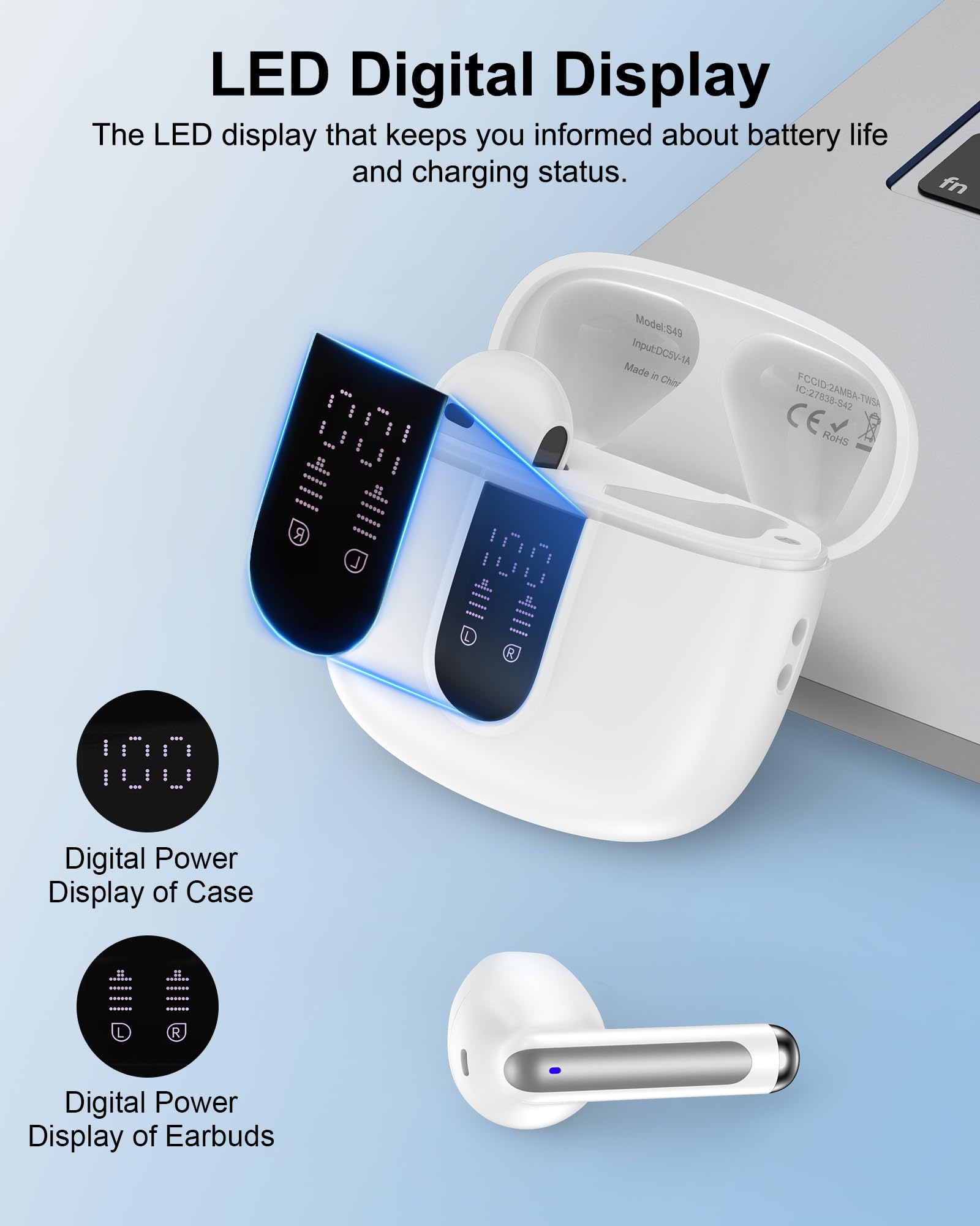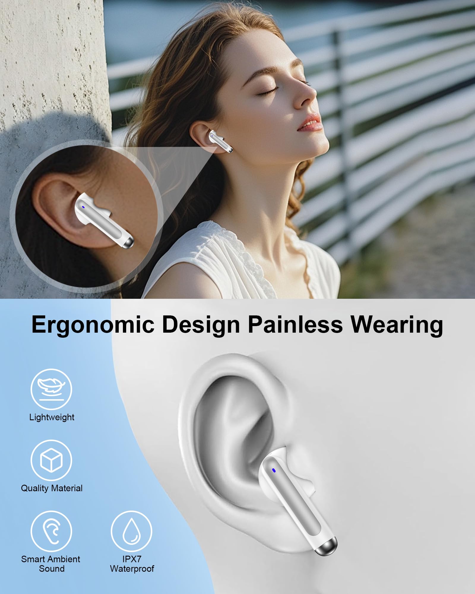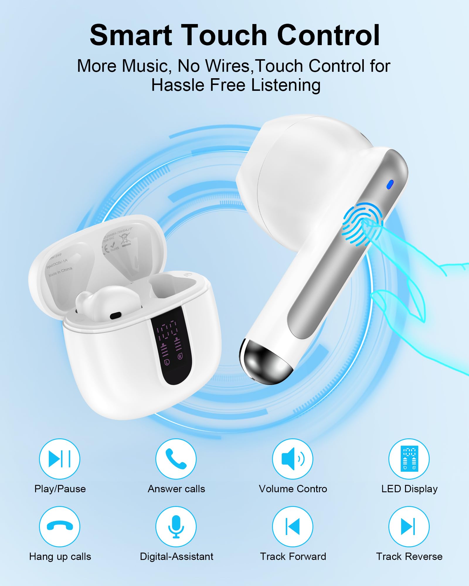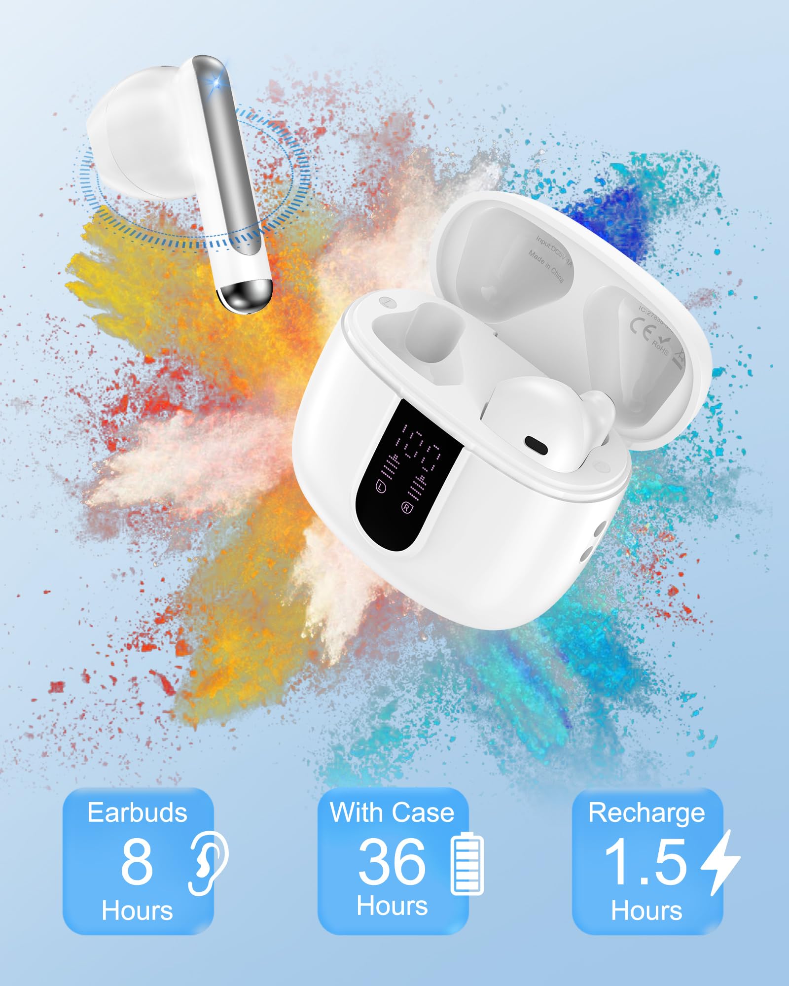 Features: Clear & Balanced Audio - Enjoy deep bass, crisp highs, and full-range sound with our Android Bluetooth earbuds with mic, ideal for music, podcasts, and calls. Noise canceling headphones block distractions for immersive listening. All-Day Comfort & Fit - Lightweight in-ear wire less earphones ear buds reduce ear fatigue. IPX7 waterproof design makes them perfect for workouts, rainy days, or active commutes. Seamless Bluetooth 5.3 - Faster pairing, stable connections, and low latency for streaming, gaming, and video calls. Compatible with iPhone, Samsung wireless headphones, and other devices. Smart Touch & ENC Calls - Tap to control music, volume, or calls without reaching for your phone. Built-in ENC ensures crystal-clear calls in noisy environments. Dual LED Display & Long Battery Life - See exact battery levels for both earbuds and case at a glance. Get up to 60 hours of use with quick charging convenience. Specification: Bluetooth Version: 5.3; Waterproof Rating: IPX7 Package List: Samsung Wireless Earbuds with charging case(White), USB-C cable, anti-lost rope, user manual Compatible List: for Android: -Samsung Galaxy S25 Edge/S25/S25+/S25 Ultra/S24/S24+/S24 Ultra/S23/S23+/S23 Ultra; -Samsung Galaxy S22/S22+/S22 Ultra/S21/S21+/S21 Ultra/S20/S20+/S20 Ultra; -Samsung Galaxy Z Fold7/6/5/4/3/2, Galaxy Z Flip7/6/5/4/3/2; -Samsung Galaxy A17 5G A16 5G A36 A56 A55 A54 A53 A35 A34 A33 A26 A06 A15 5G A14 5G A13 5G A23 A73 5G A25 A24 -Google Pixel 10/10 Pro/10 Pro XL/10 Pro Fold/9/9 Pro/9 Pro XL/8/8Pro/7/7pro/6/6a/5/4/3a/2; for Apple: -iPhone 17/Air/17 Pro/17 Pro Max/16/16e/16 Plus/16 Pro/16 Pro Max/15/15 Pro/15 Pro Max/15 Plus/14/14 Plus/14 Pro/14 Pro Max; -iPhone 13/13 Mini/13/13 Pro/13 Pro Max/12/12 Mini/12 Pro/12 Pro Max/11/11 Pro/11 Pro Max/SE/XR/XS/X/8; -iPad, iPad Pro,iPad mini, iPad Air, and so on.