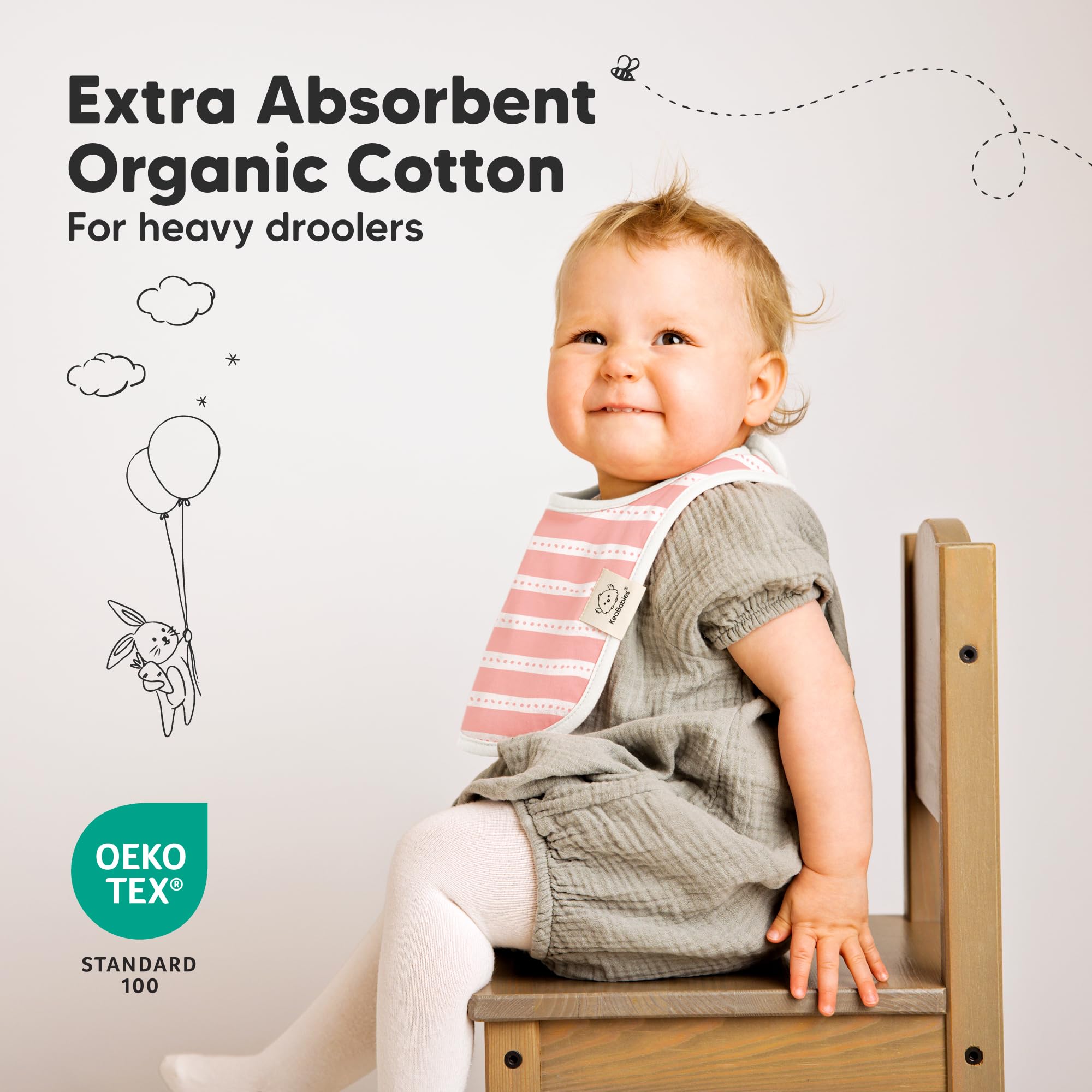 Super Absorbent - Our organic baby boy and girl bibs are made with 100% organic cotton and backed with water-resistant fleece for added absorption. This dual layer design helps to keep baby clean and fresh all day. Ideal for newborns up to toddlers!