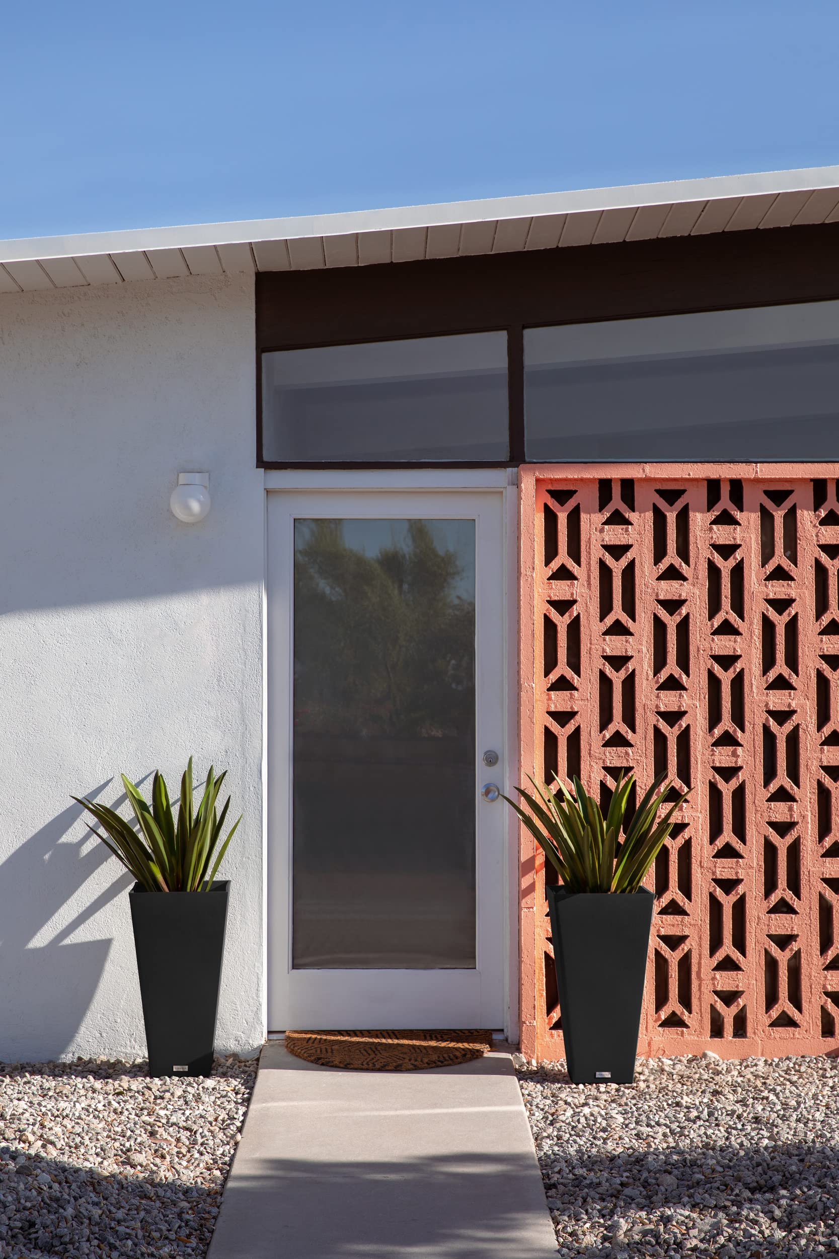 GARDEN DECOR: Decorate your space with the Veradek Taper planter; Whether you use it as a patio, entrance or railing accent, this strong and sturdy yet lightweight contemporary garden container is the perfect fit with its sharp and modern appeal