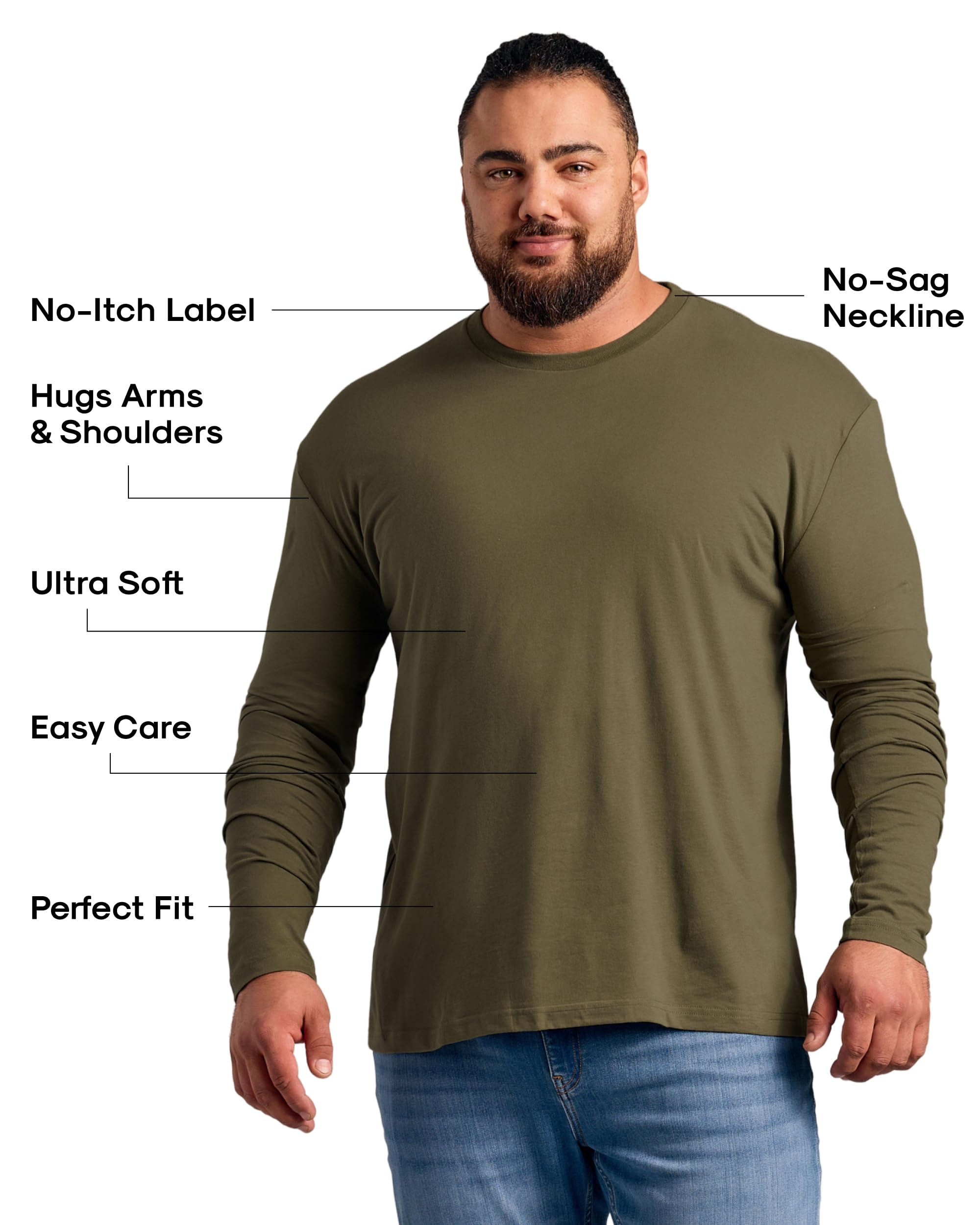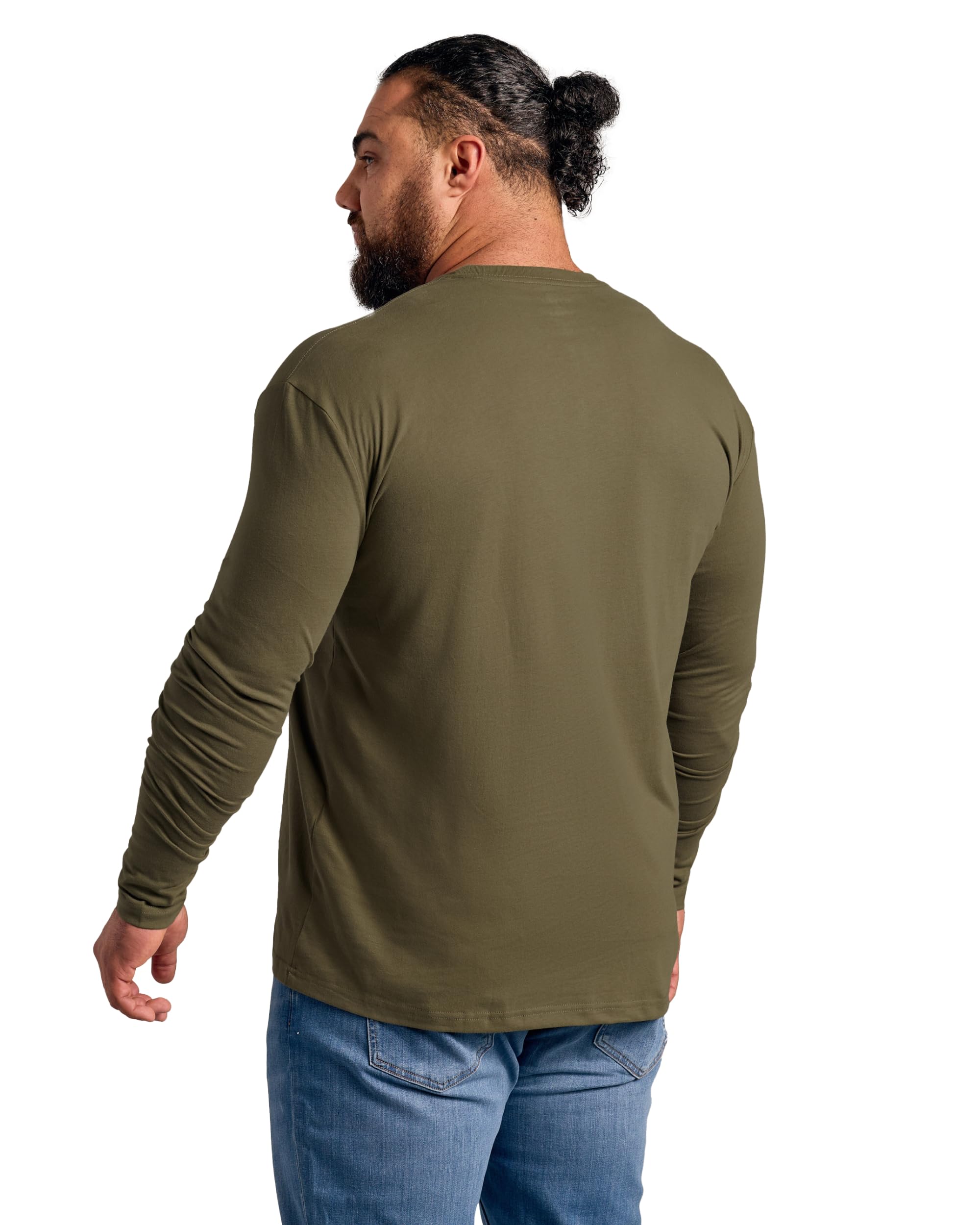ALL-DAY COMFORT, TAG-FREE: Long sleeve men's t-shirts built for easy wear from workdays to weekends. Our classic crew and mens henley shirts have tagless prints with classic side seams that keep shape with minimal shrinkage (about 5% on low heat).