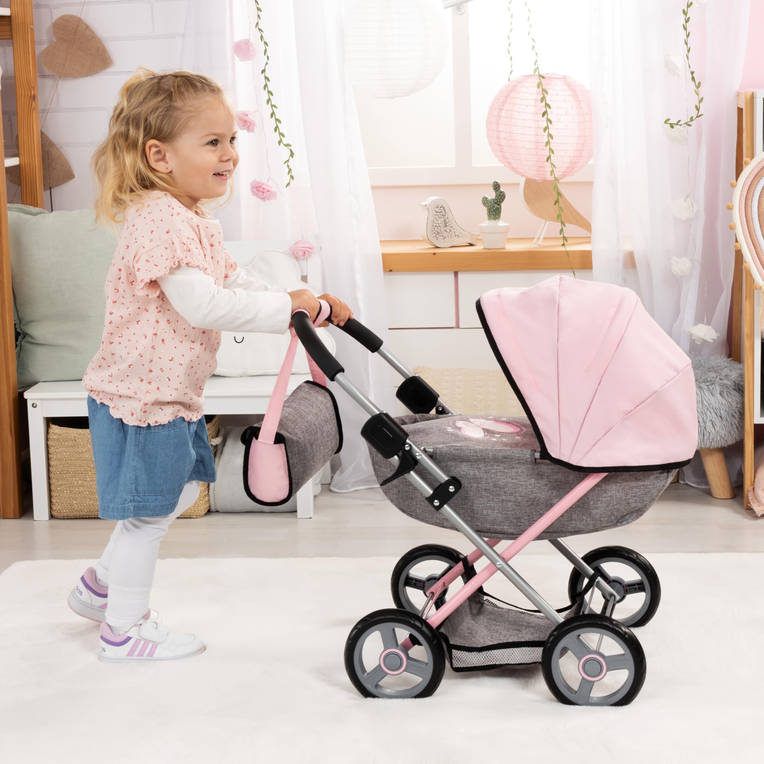 Ample Storage: Includes a large integrated basket and a shoulder bag, offering plenty of space to carry all essentials needed for a perfect day out with dolls