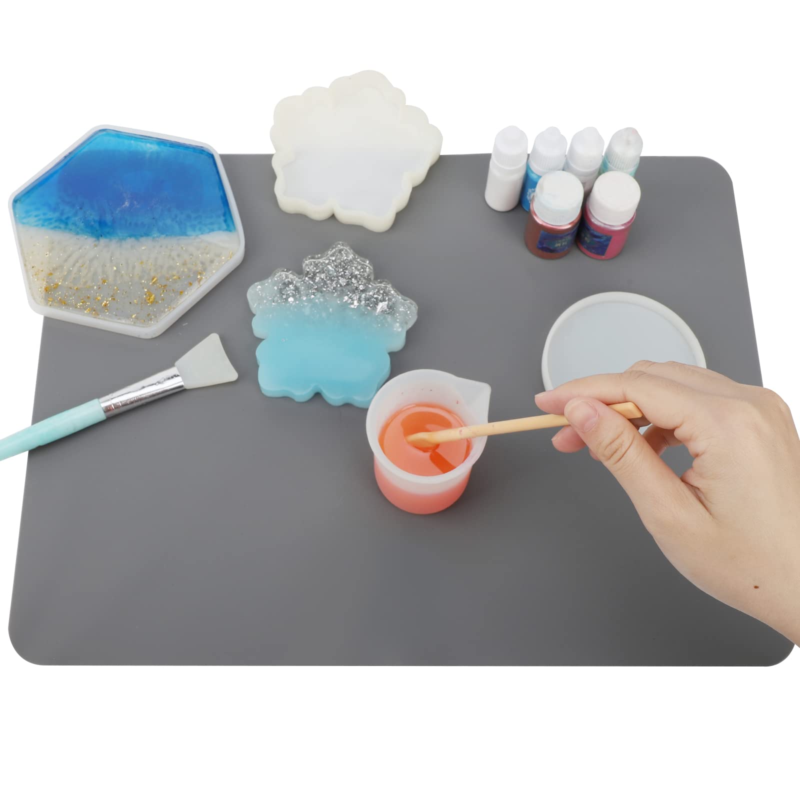 QUALITY MATERIAL - Silicone craft mat is made of 100 percent food grade silicone, heat resistant between -40℉ and 446℉. Durable and reusable, waterproof, non-slip, nonstick, non-fading, non-staining, not easy to deform or tear up, great for casting tools kit.
