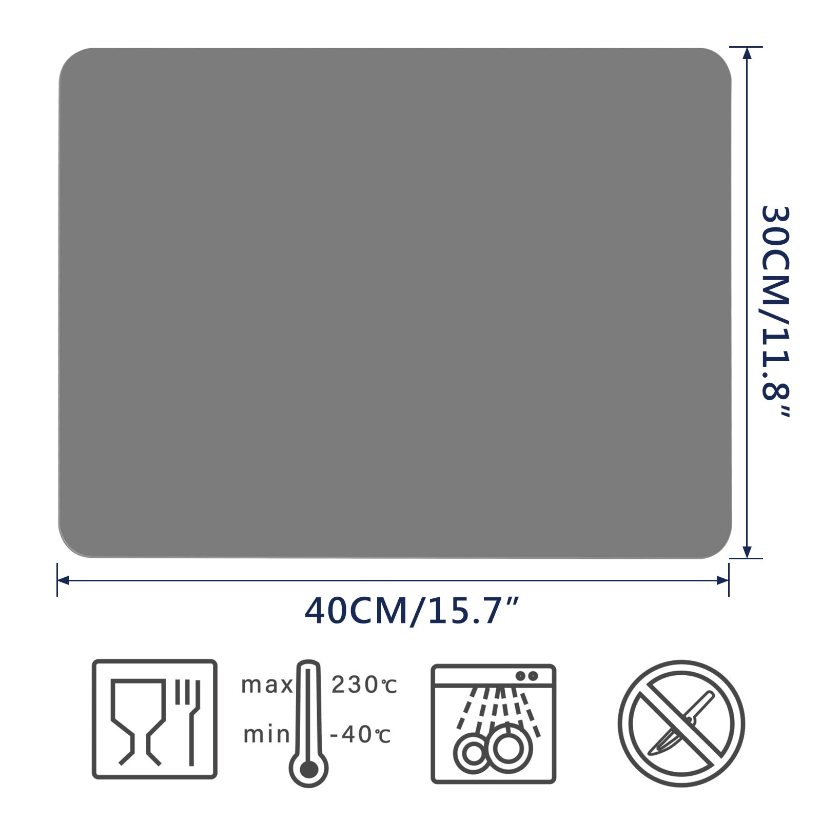 LARGE SIZE PLACEMAT - With non-skid backing design, 2 Pcs Black silicone pads measures 15.7 x 11.8 x 0.03 inches / 40 x 30 x 0.08 cm, perfect for baby / child feeding mat, keep the table clean. Tips: A side is smooth surface (face down), the other side is frosted (face up).