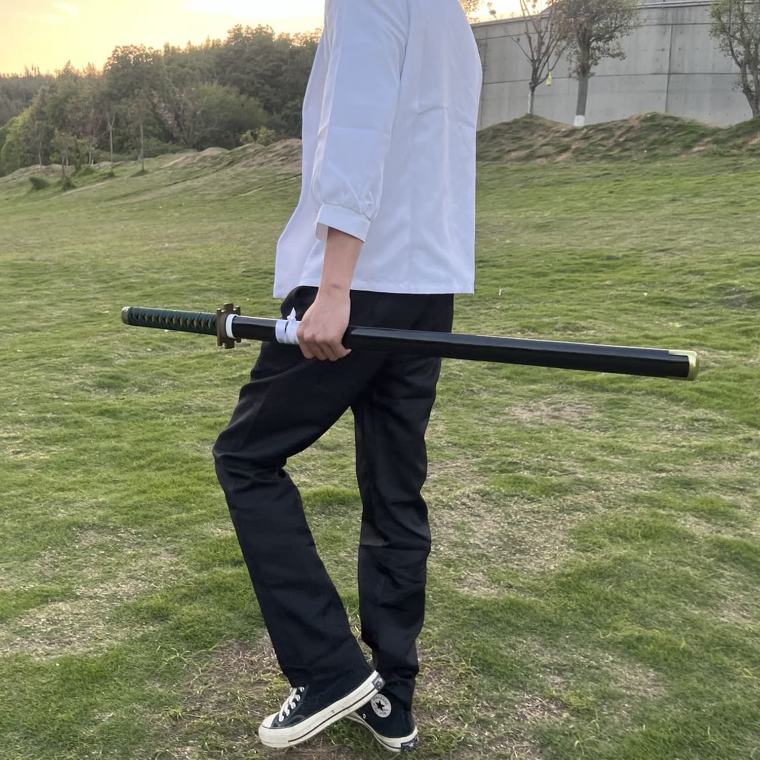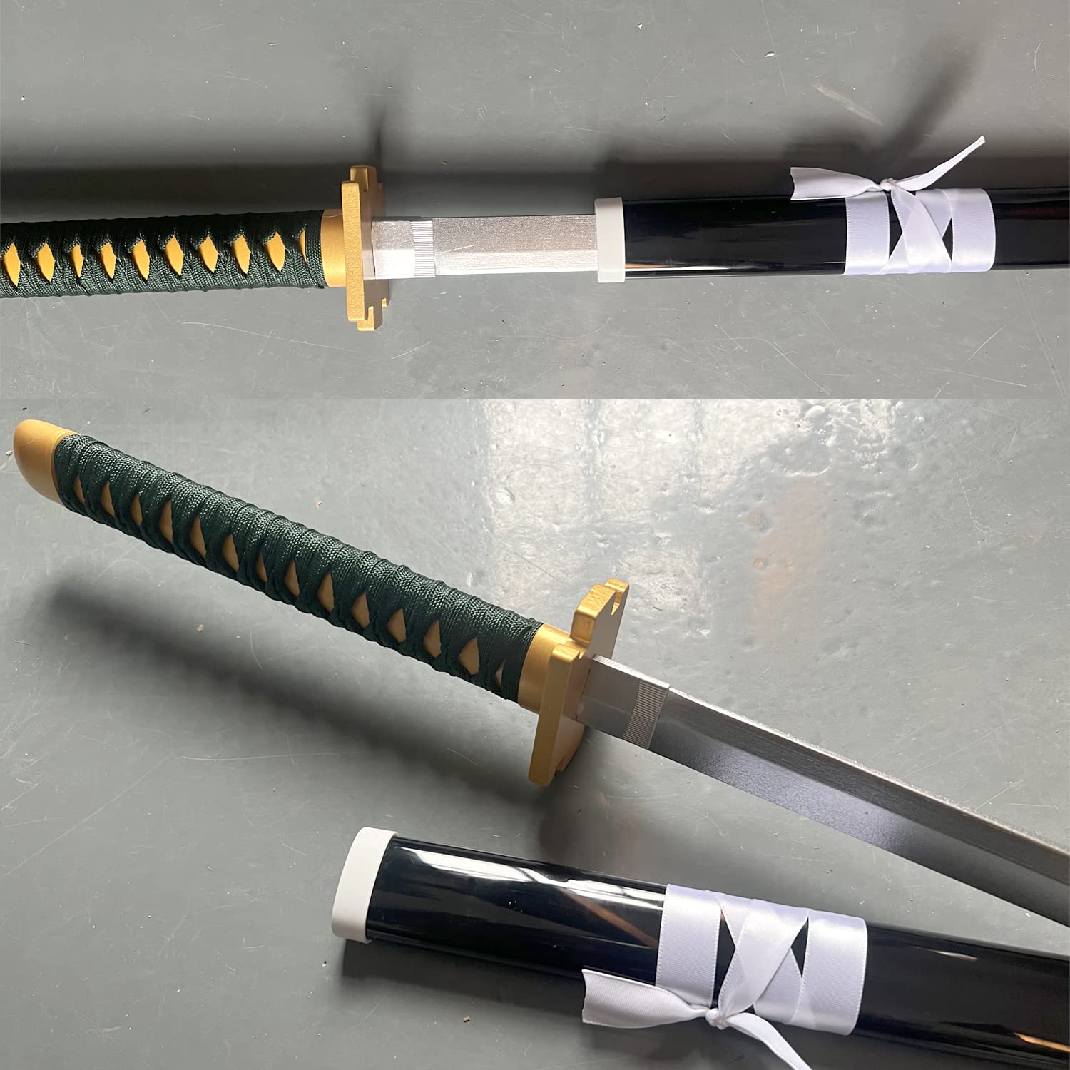 [TECHNICAL ADVANTAGES]-The whole sword is made of light material, it will not be tired after long time use. ✅Handle-The cotton rope is wrapped, it is comfortable to hold, . ✅ Blade- not sharp and safe, tough and not easy to break. ✅Scabbard- smooth and not easy to fall off paint, fit with the blade, and protect the blade well. ✅ Cutter-Plastic material, the color is very similar to real metal.