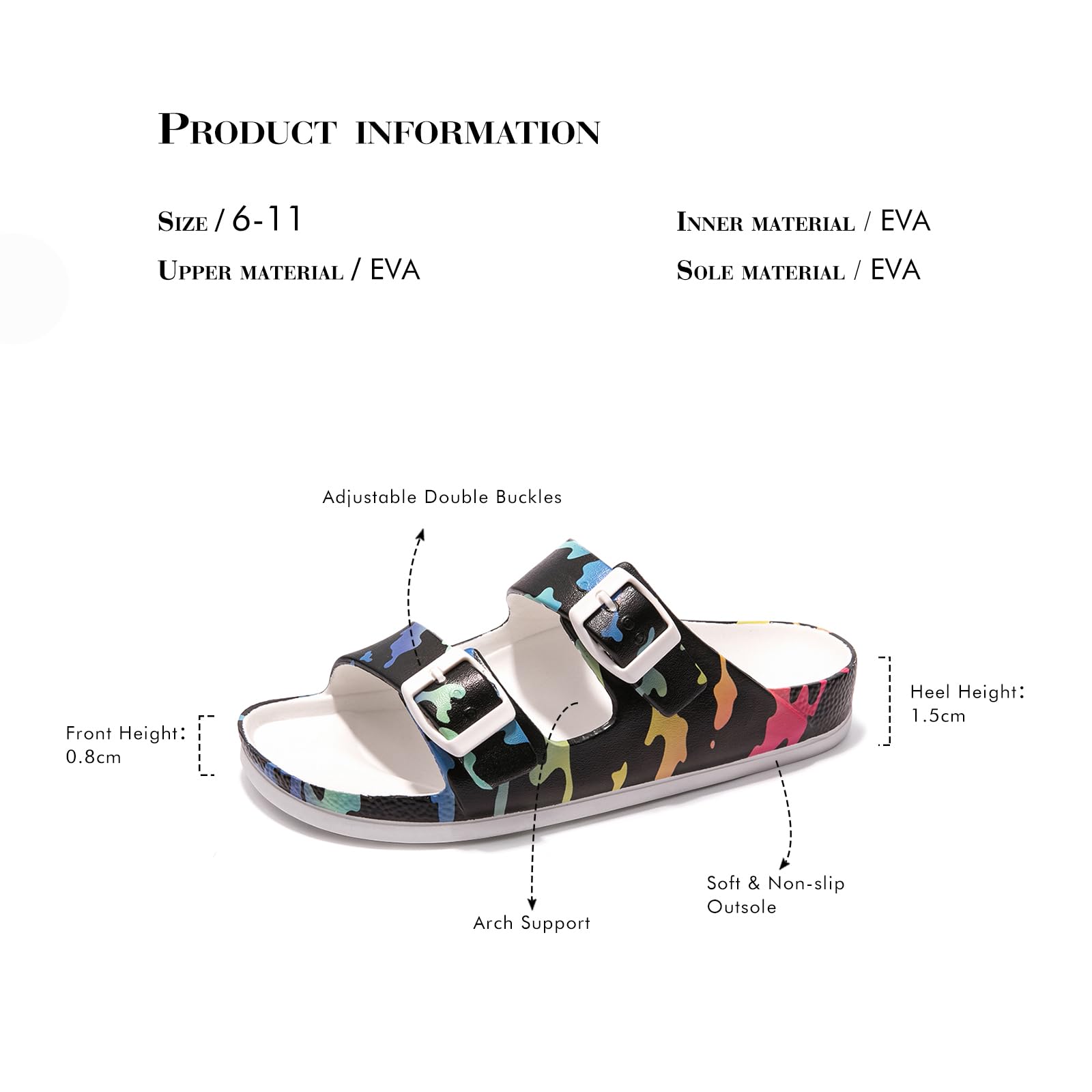 Custom Fit with Dual Adjustable Straps: The FUNKYMONKEY sandals women feature two fully adjustable straps that conform to the unique shape of your feet for a secure, personalized fit. To ensure maximum comfort and avoid returns, please check the size chart before ordering your new pair of womens slides.