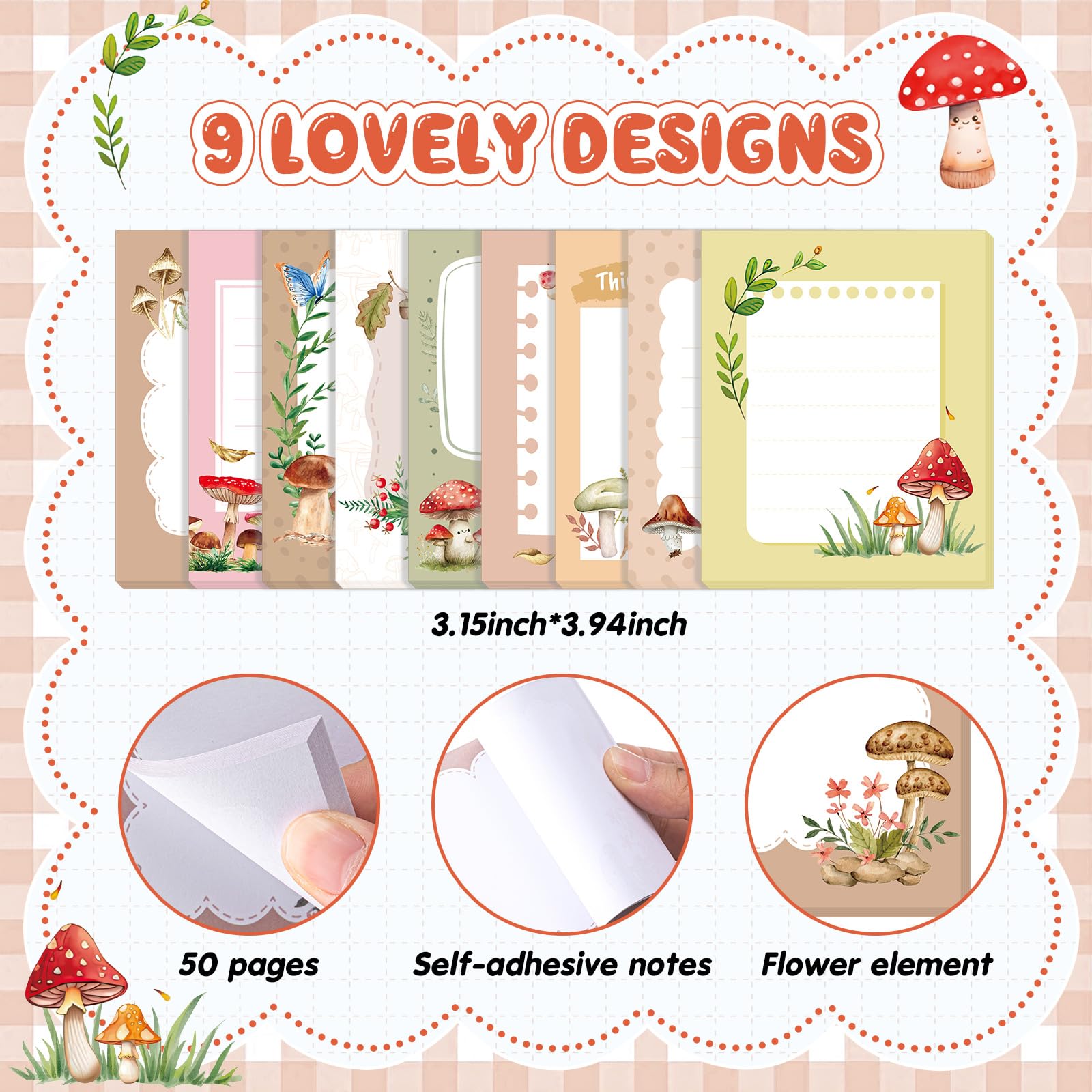 Mushroom Patterns: these mushroom sticky note pads adopt aesthetic mushroom design, exquisite and beautiful, so that you can feel the pleasure brought by mushrooms, bringing joy to your daily use