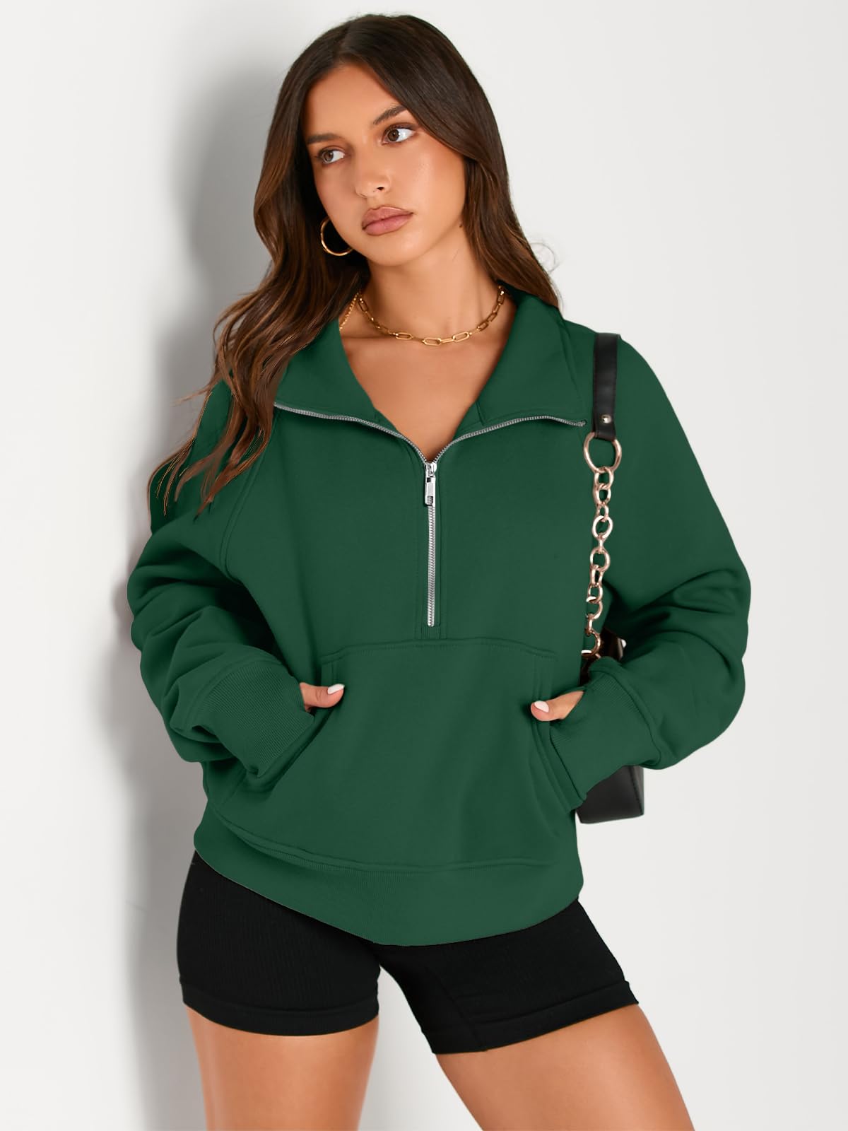 ★Fashion: 1/2 zip up collar sweatshirt, the zipper works smoothly, solid color, stand collar, y2k clothing, fleece lined, soft inside, relaxed fit, crop top