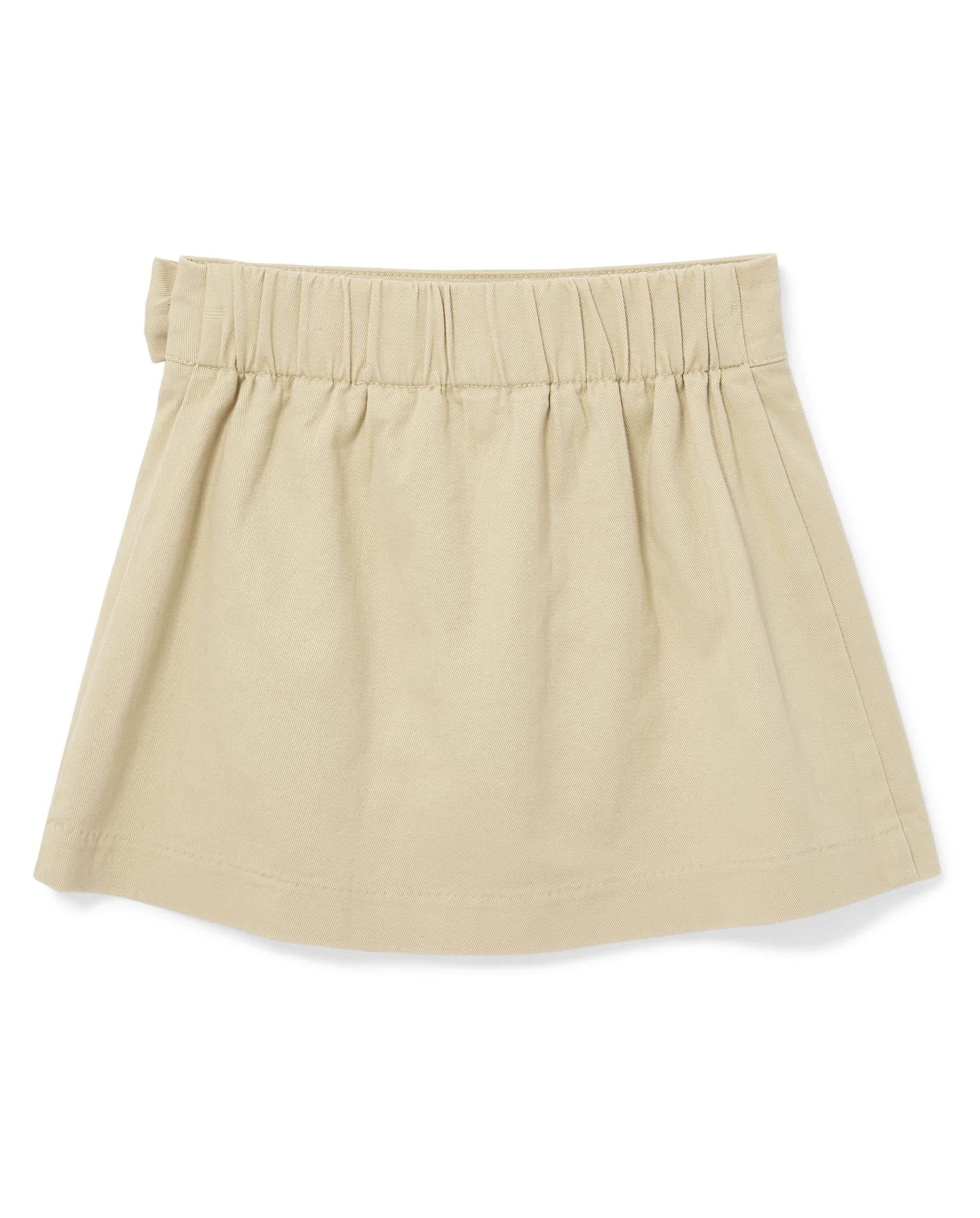 This classic front-pleated skort has a pull-on waist and hidden size zipper