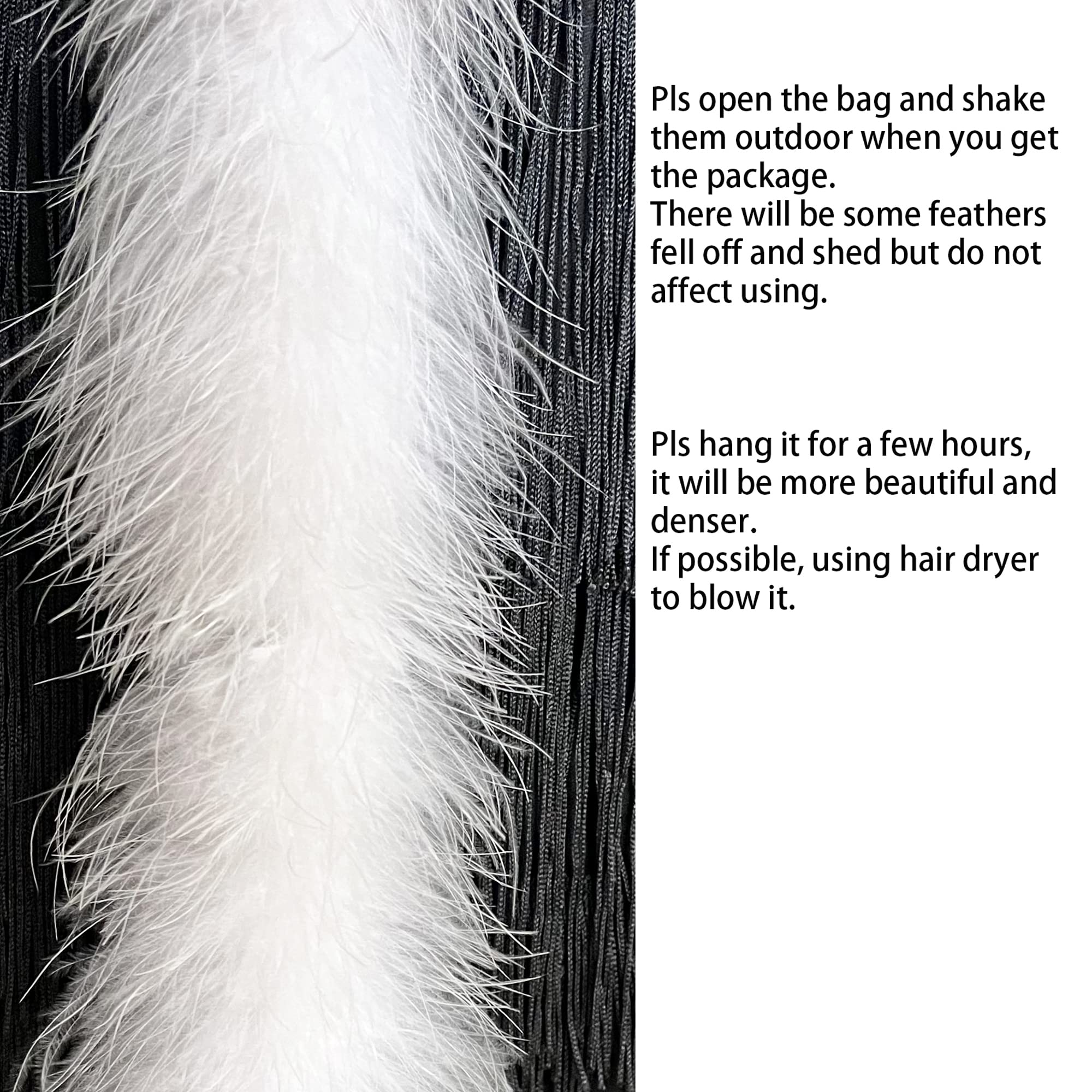 Before using, please shake off the extra feather outdoors. since our feathers are all NATURAL and HANDCRAFTED, there may be feather drops, but it will not affect your use