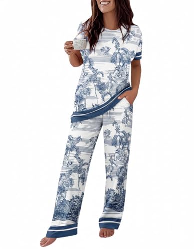 Perfect for Every Season – Soft and comfortable 2-piece lady pajamas are perfect for summer and winter nights, daily wear, lounging, or even shopping. This lovely printed short-sleeved pajama set is a perfect gift for your mom, daughter, wife, girlfriend, or best friend.