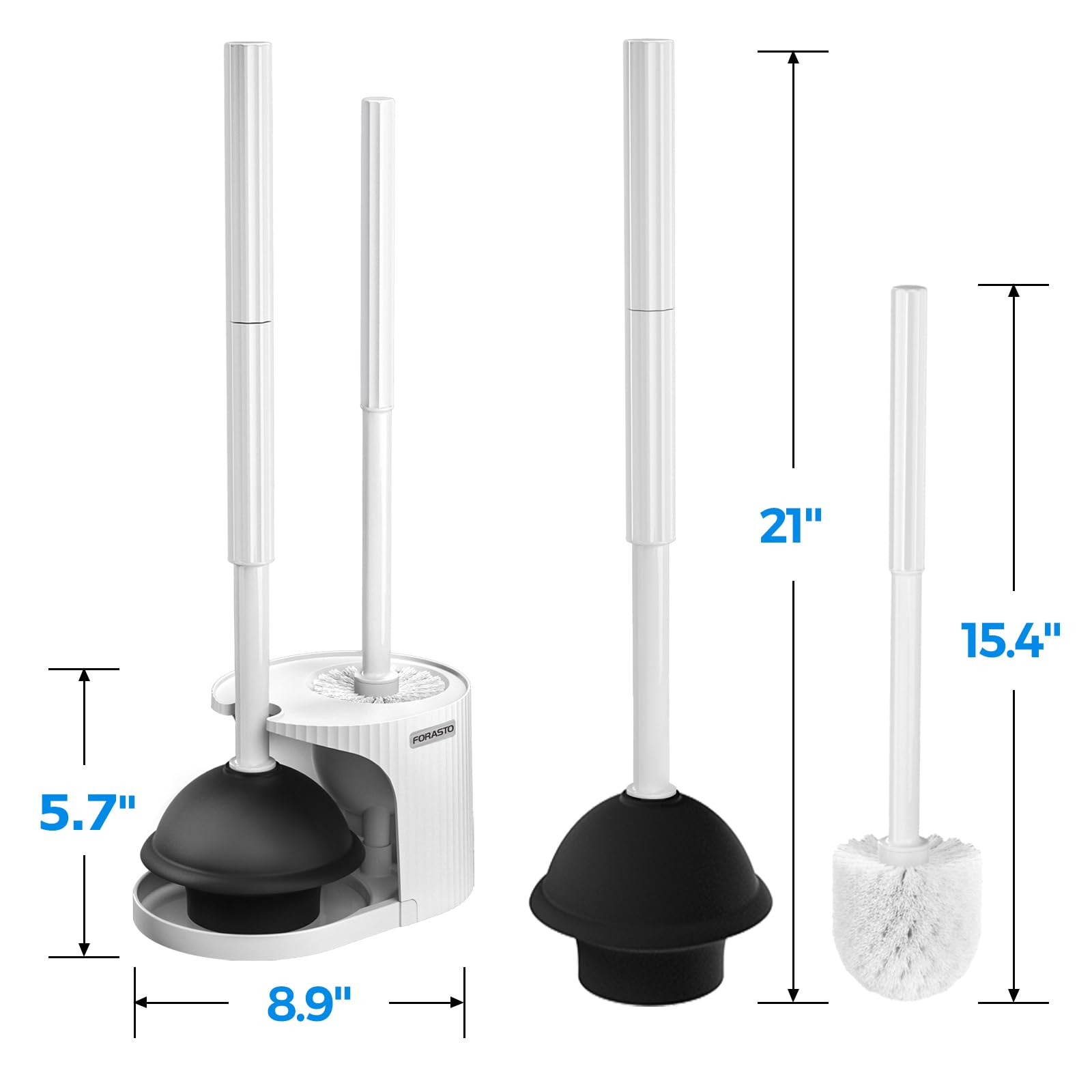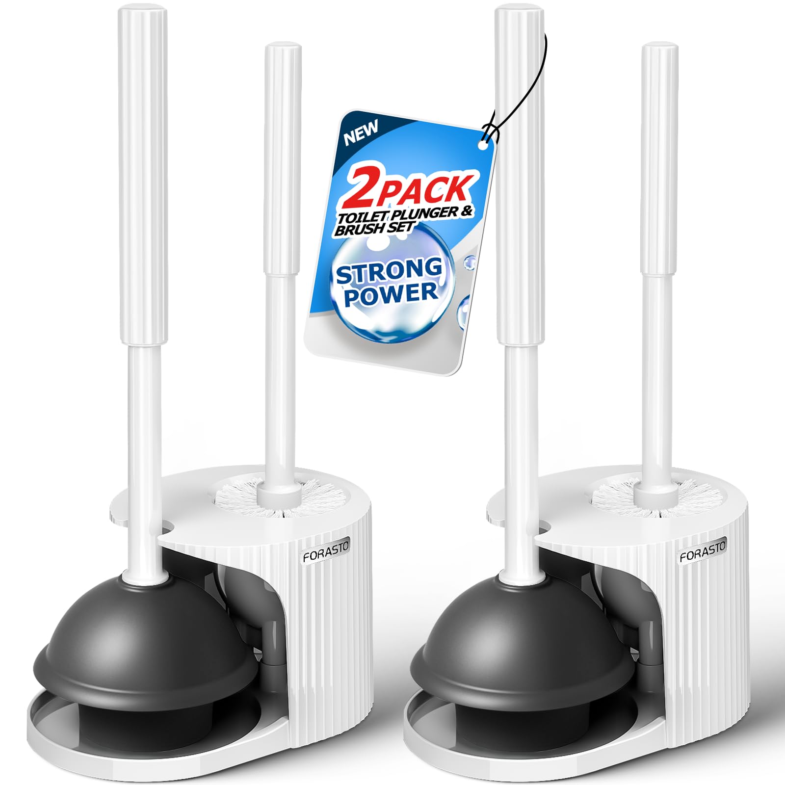 Toilet Brush and Plunger Set: This product has a durable toilet brush, a high-suction toilet plunger with an extended handle and a stable bracket.