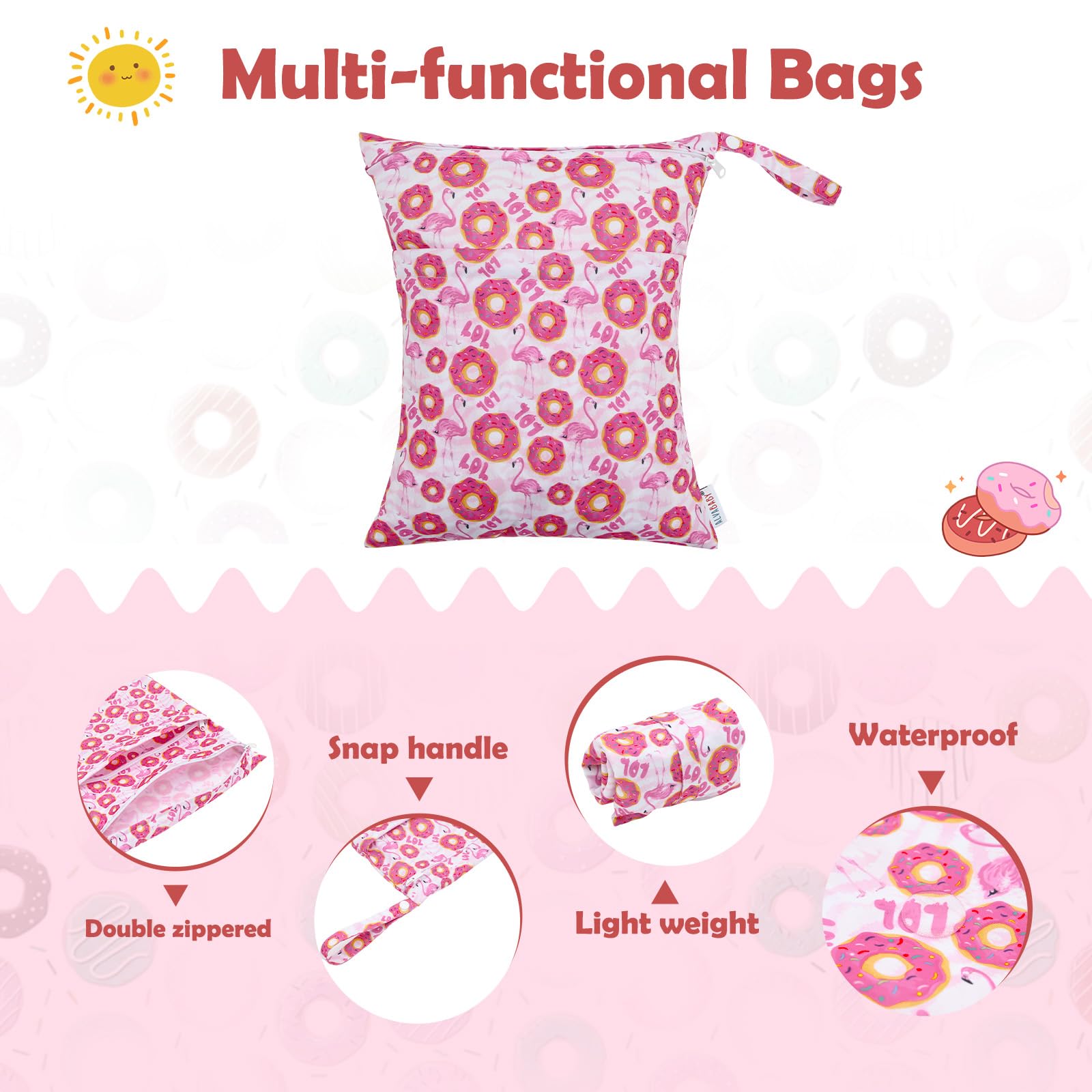 Multi-functional Bags-A truly wonderful bag that allows you to carry your wet and dry items in the same bag. Carry all your items in one bag while keeping your dry items dry and your wet or soiled items separate. Truly an all in one bag! They can be used as diaper wet dry bags,travel bags,storage bags,cosmetic bags,handbags,wash bag,organizer bags.