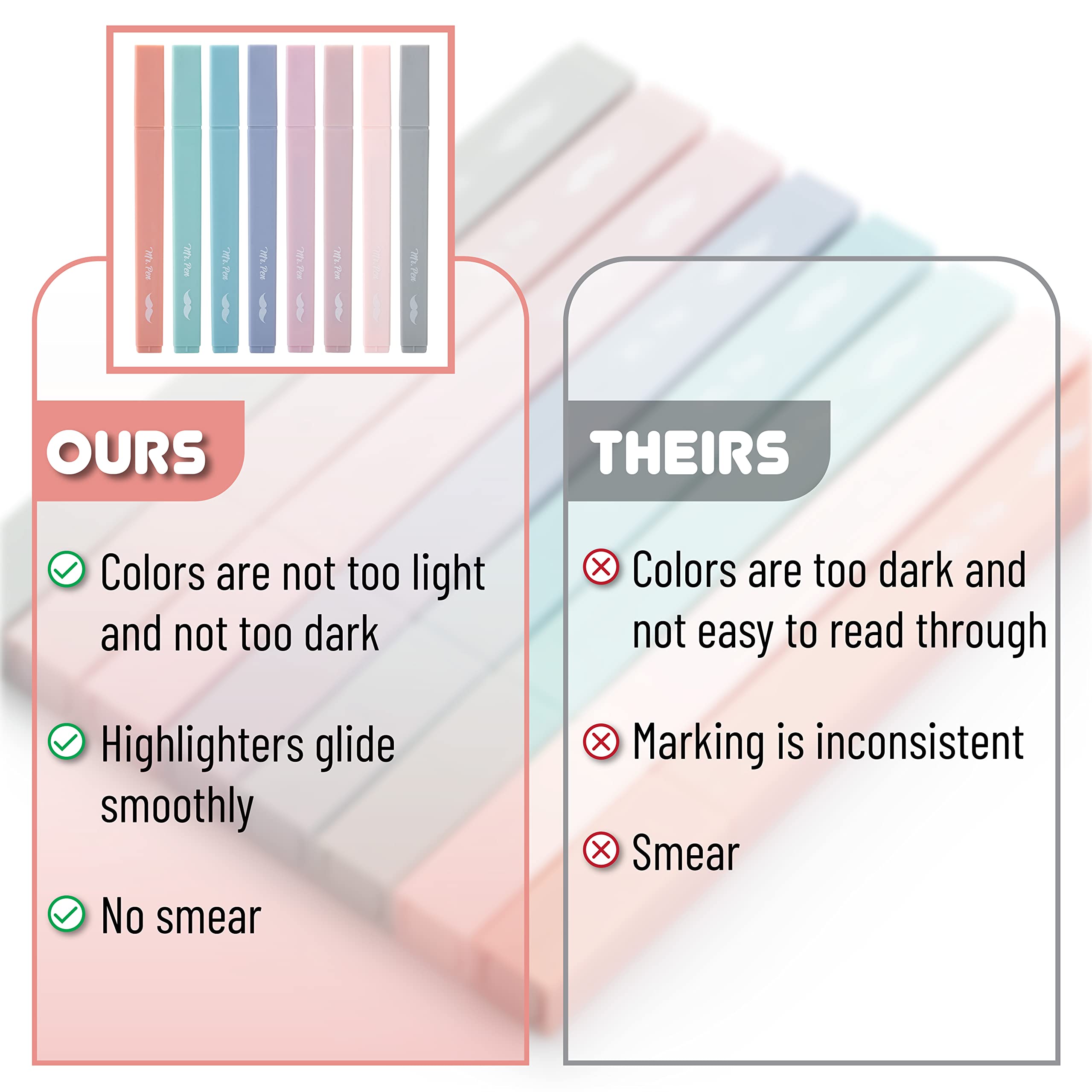 Make your notes and papers pop with our soft and gentle highlighters! This package includes 8 highlighters in non-neon, assorted colors. Our highlighters are perfect for making your work and school life a little bit brighter.
