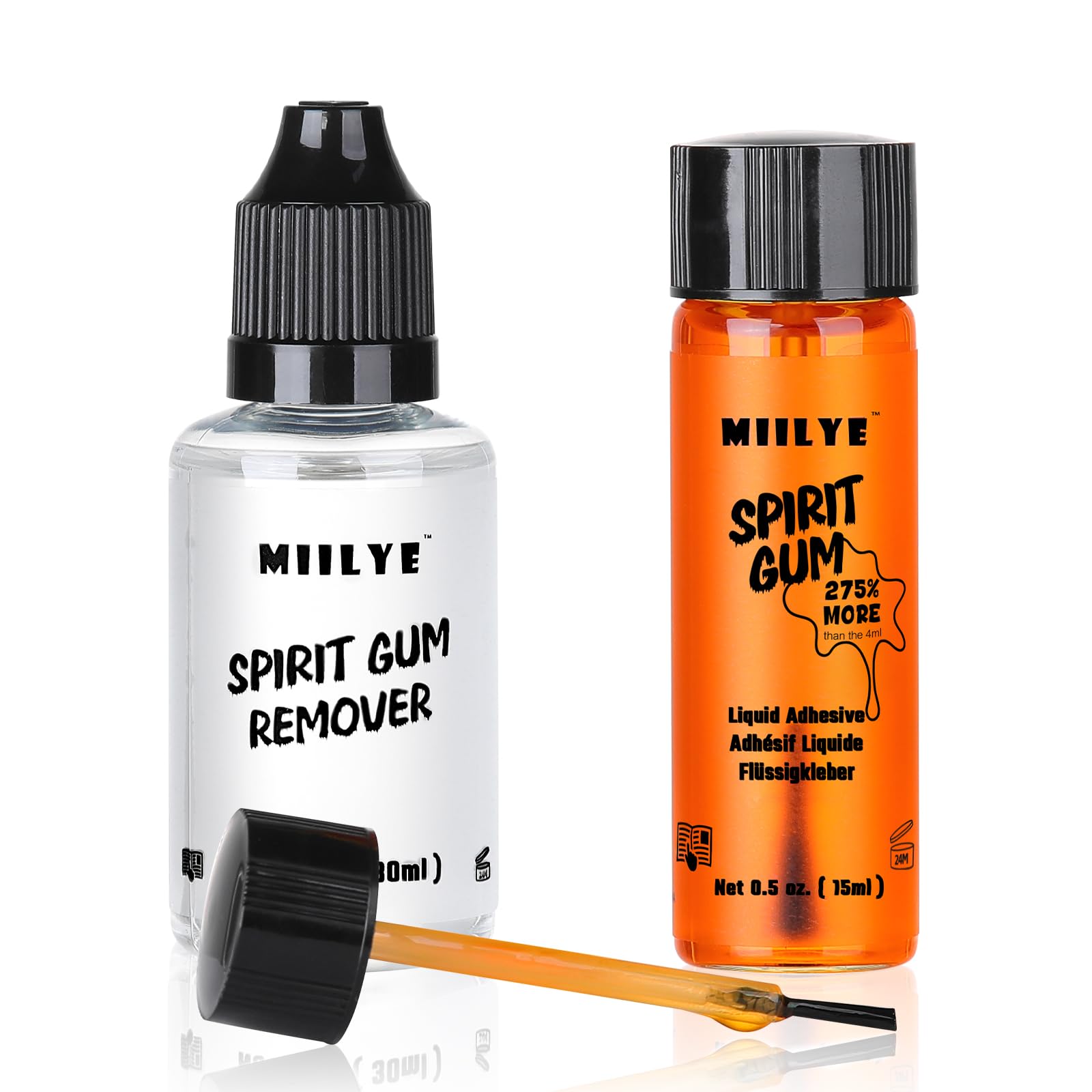 Easy-to-Use Spirit Gum Adhesive & Remover Kit for Special Effect; The spirit gum kit comes with a gentle spirit gum remover to dissolve adhesive residue quickly, keeping skin clean post-application.