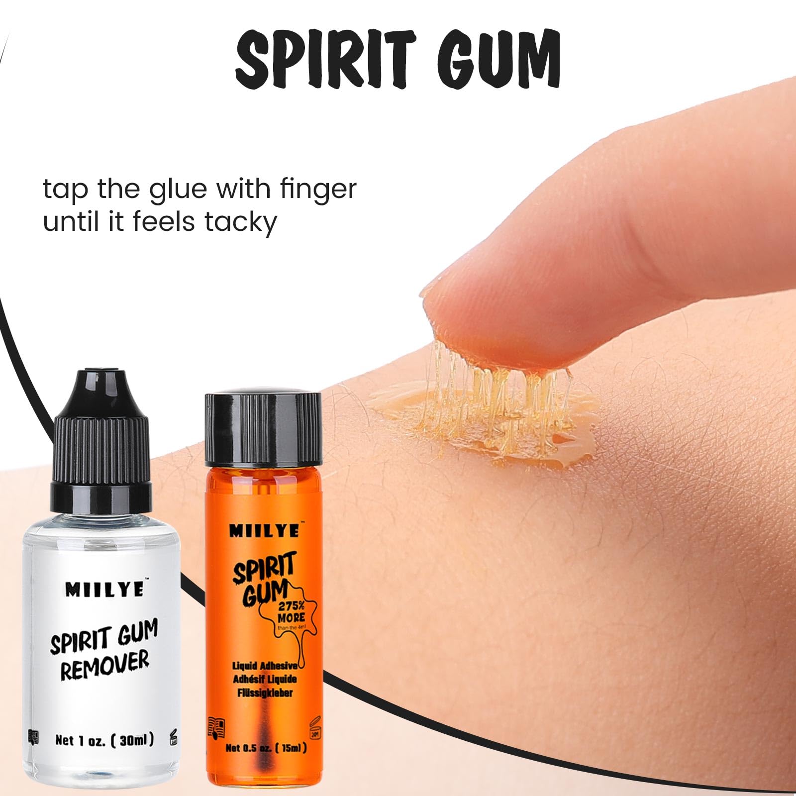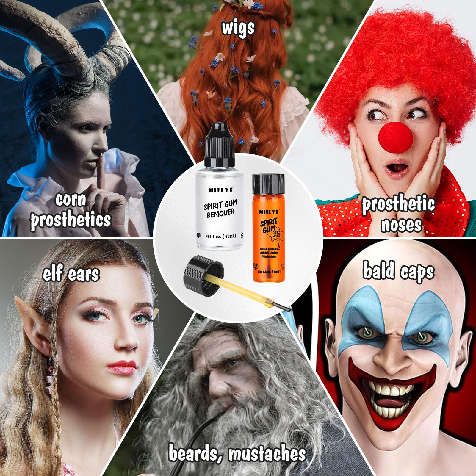 Quick & Easy Application; Apply a thin layer of spirit gum to clean skin, press the accessory firmly, then remove effortlessly with the remover. Perfect for cosplay accessories and quick makeup changes. Create a professional look for special effect makeup, Halloween costumes, monsters, vampires, zombies, cosplay, graveyard scenes, movie props, carnivals, festivals, masquerades, or theater performances.