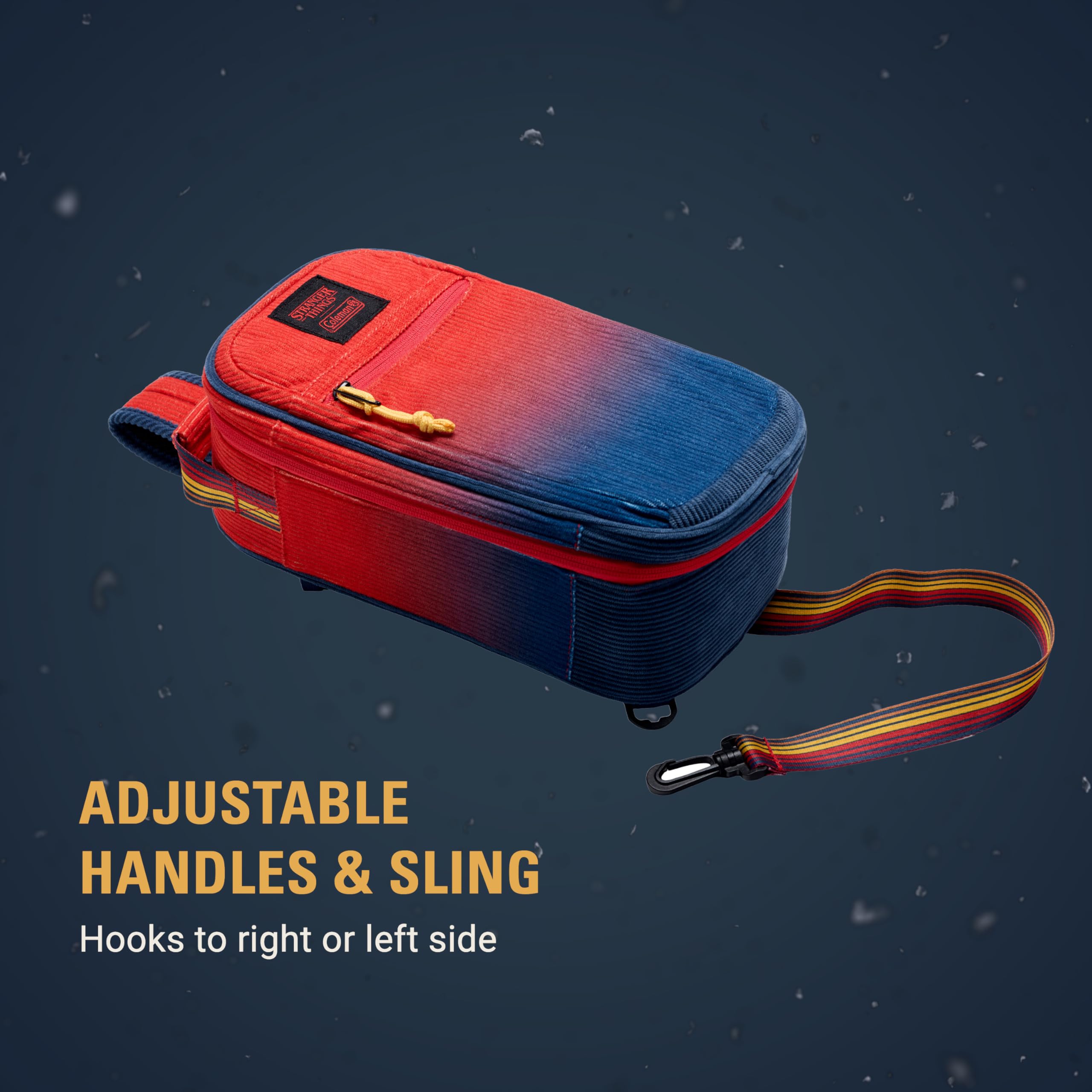 READY TO RUN: Adjustable padded top handles and sling strap for bringing snacks while escaping Demogorgons