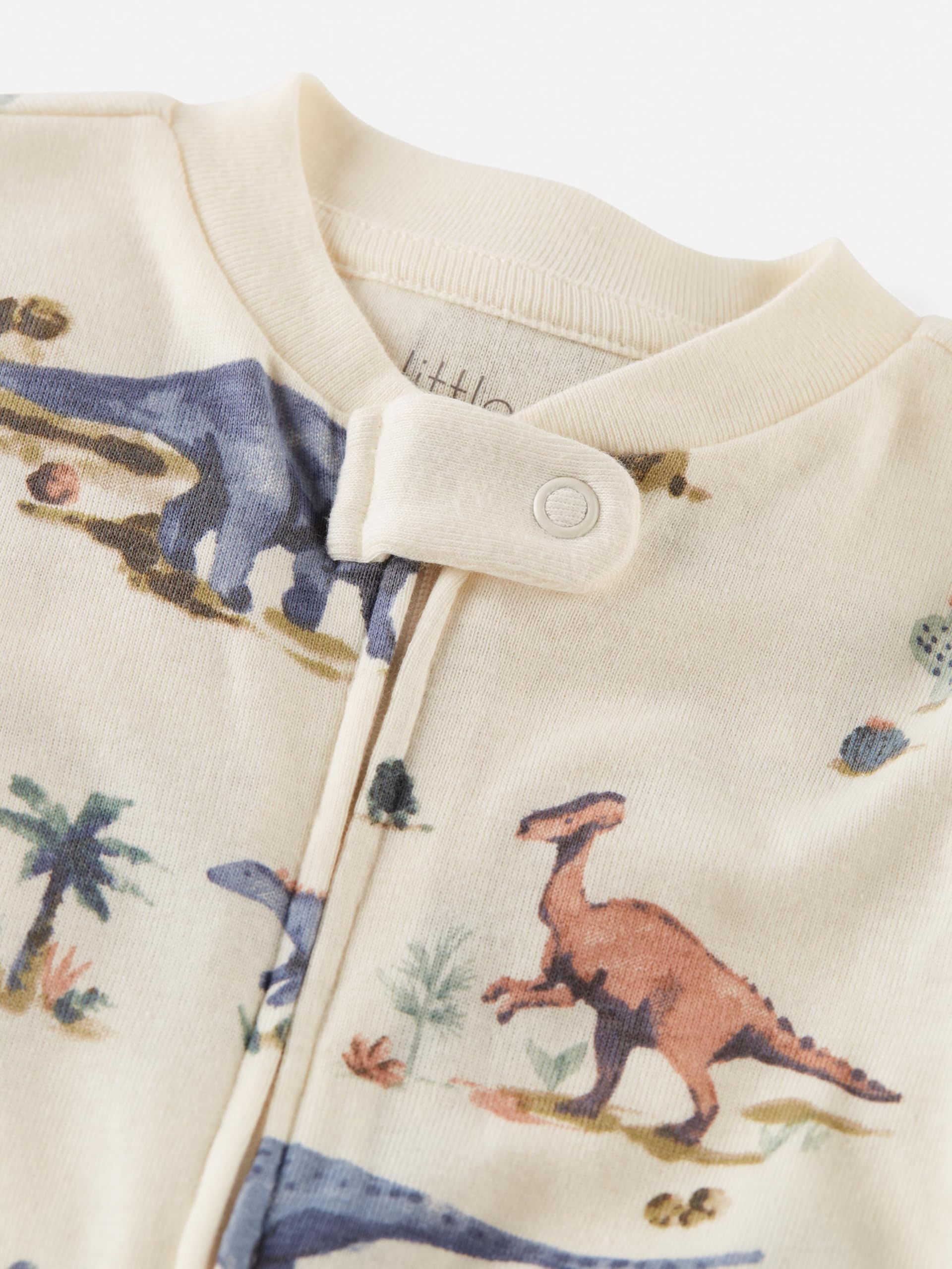 Description Cuddle baby up in this soft, certified organic cotton sleep & play. Made for daily adventures in tummy time, nap time and beyond, this piece is blooming with thoughtful details like a 2-way zipper to keep baby's arms & torso warm during diaper changes, plus built-in footies to keep tiny toes cozy. In our exclusive print, this one piece is wildly cute!