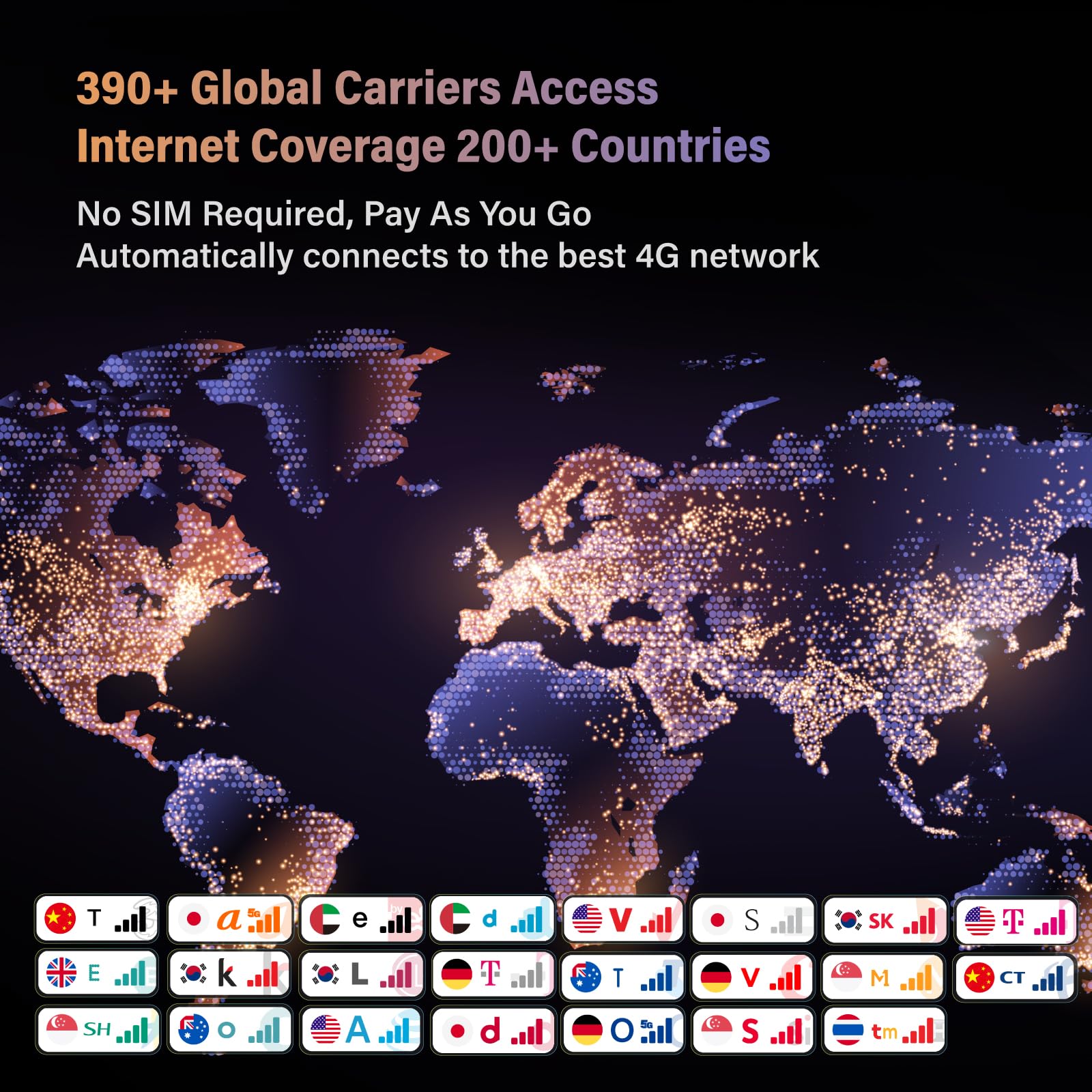 【SIM-Free, Multiple Data Plans】G4 Pro Mobile Hotspot Device does not need a SIM card to work due to the Cloud SIM Tech. Our services support NO CONTRACT or PAY AS YOU GO and offers thousands of flexible data packages which covers over 200 countries in the world for you to choose from daily, monthly, or GB packages, allowing you hassle-free access to the internet without any bindings, making it a true portable WiFi solution. But that's not all, it also supports a SIM card slot for you to use the data from your own card.