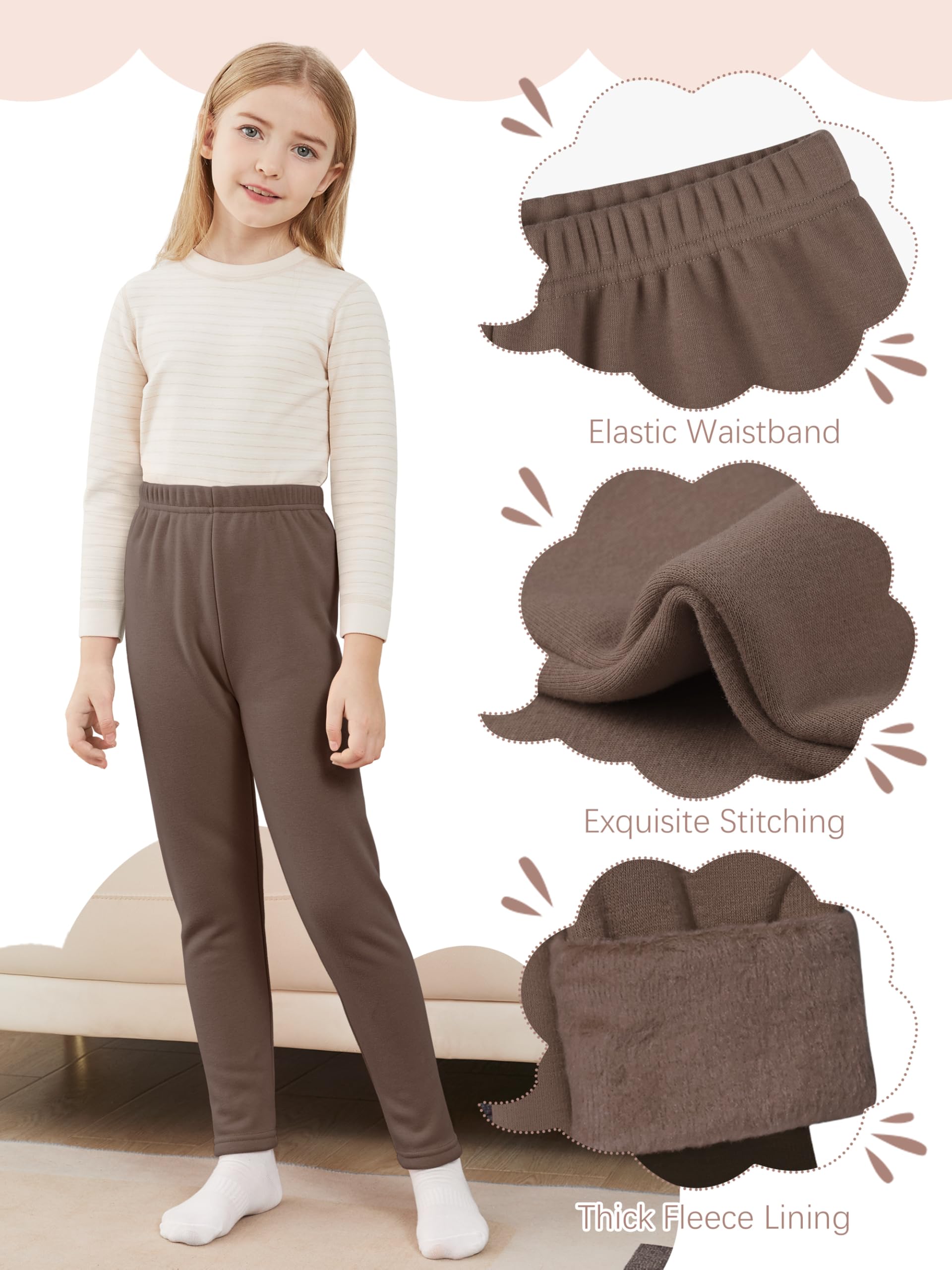 FLEECE LINED LEGGINGS: The outer layer of these warm leggings for girls is made of pure cotton and they are lined with fleece, making them elastic, soft, comfortable, and with excellent warmth.