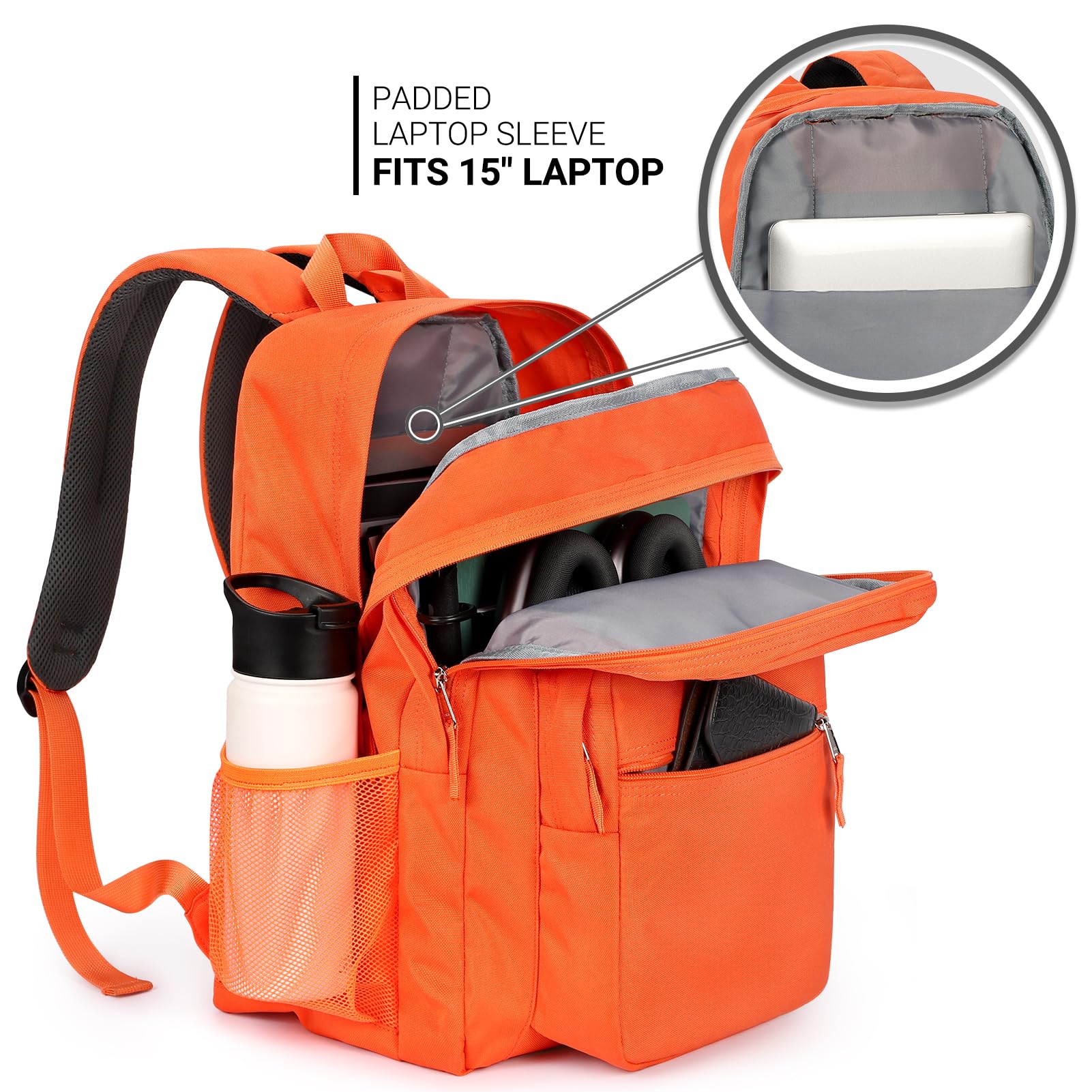 Convenient Storage Backpack: Our unisex laptop backpack features two main compartments, including a dedicated laptop sleeve for up to 15.6" devices. It also boasts a discrete front stash pocket, a utility pocket with an integrated organizer, and an additional external zippered pouch for quick access. Plus, two side pockets accommodate various water bottle sizes.