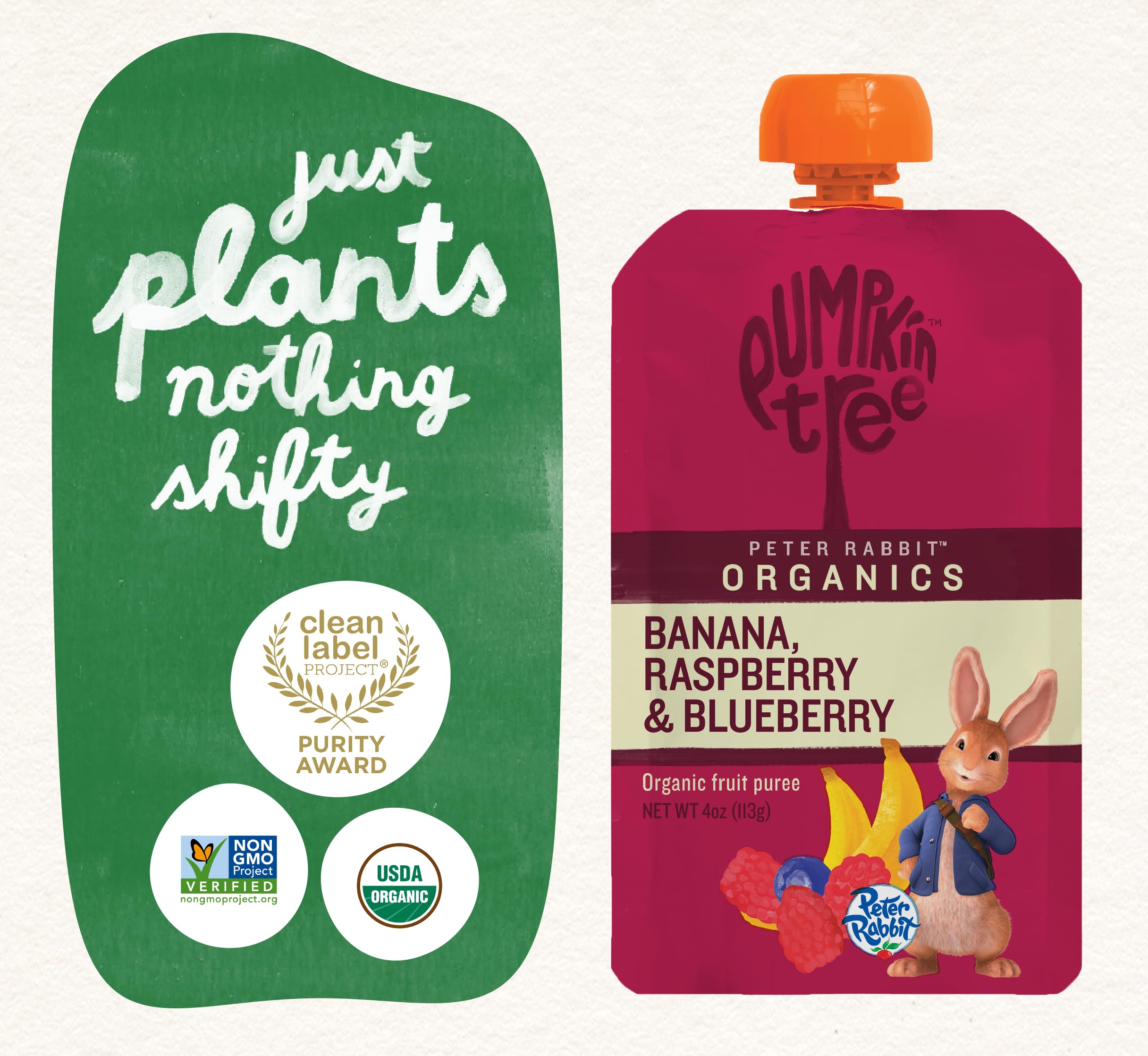 Peter Rabbit Organics Baby Raspberry Banana Blueberry, USDA Certified Organic, Non-GMO, 4 Ounce (Pack of 10)