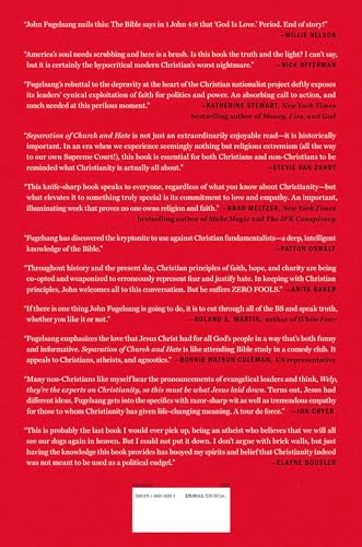 NEW YORK TIMES BESTSELLER * In the spirit of George Carlin and Christopher Hitchens, the son of a former Catholic nun and a Franciscan brother delivers a deeply irreverent and biblically correct takedown of far-right Christian hatred—a book for believers, atheists, agnostics, and anyone who’ll ever have to deal with a Christian nationalist. For more than two centuries, the United States Constitution has given us the right to a society where church and state exist independently. But Christianity has been hijacked by far-right groups and politicians who seek to impose their narrow views on government, often to justify oppressive and unequal policies. The extremists who weaponize the Bible for earthly power aren’t actually on the side of Jesus—and historically they never have been. How do we fight back against those acting—literally—in bad faith? Comedian and broadcaster John Fugelsang finally offers the answers. In this informative, perspective-shifting book, Fugelsang takes readers through common fundamentalist arguments on abortion, immigration, LGBTQ rights, and more—exposing their hypocrisy and inaccuracy through scripture, common sense, and deeply inappropriate humor. It offers practical tips on how to debate your loved one, coworker, or neighbor on the issues that divide us using that Bible they claim to follow. But Fugelsang’s message is about more than just taking down hypocrites. It’s about fighting for the love, mercy, and service that are supposed to make up the heart of Christianity. Told with Fugelsang’s trademark blend of radical honesty, comedy, and deep political and religious knowledge, Separation of Church and Hate is the book every American needs today. It’s a rallying cry for compassion and clarity for anyone of any faith who’s sick of religion being used as a cloaking device for hate.