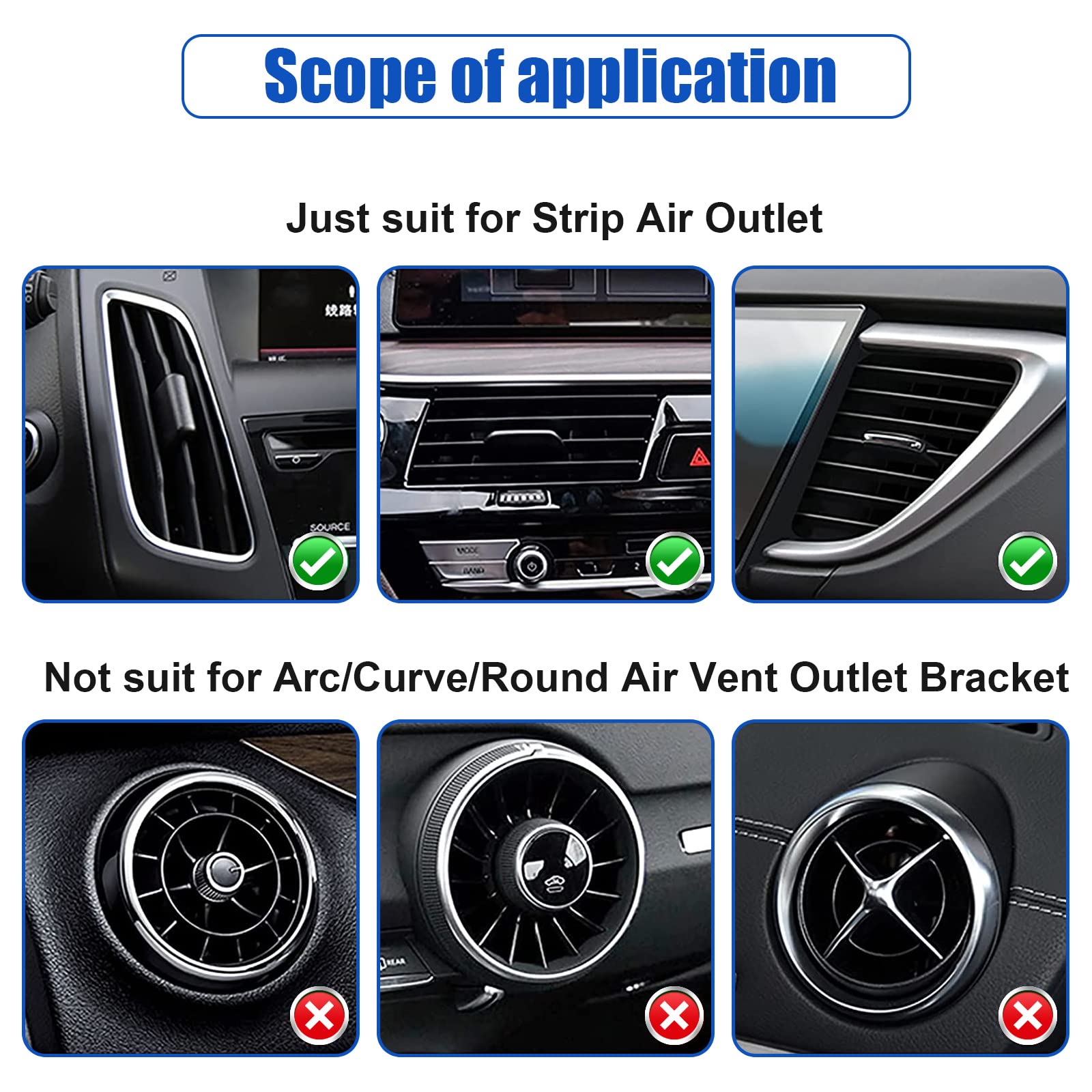 Compatibility and Application: Our PYHLVCLF Vent outlet trim decoration strips just suit for all straight air-conditioning air outlet grille models, but not for arc/round/curved air outlet grilles, please make sure of your car air outlet grille carefully before purchase. NOTE: The air vent outlet accessory is universal, suitable for most car models, pls take assure to use.