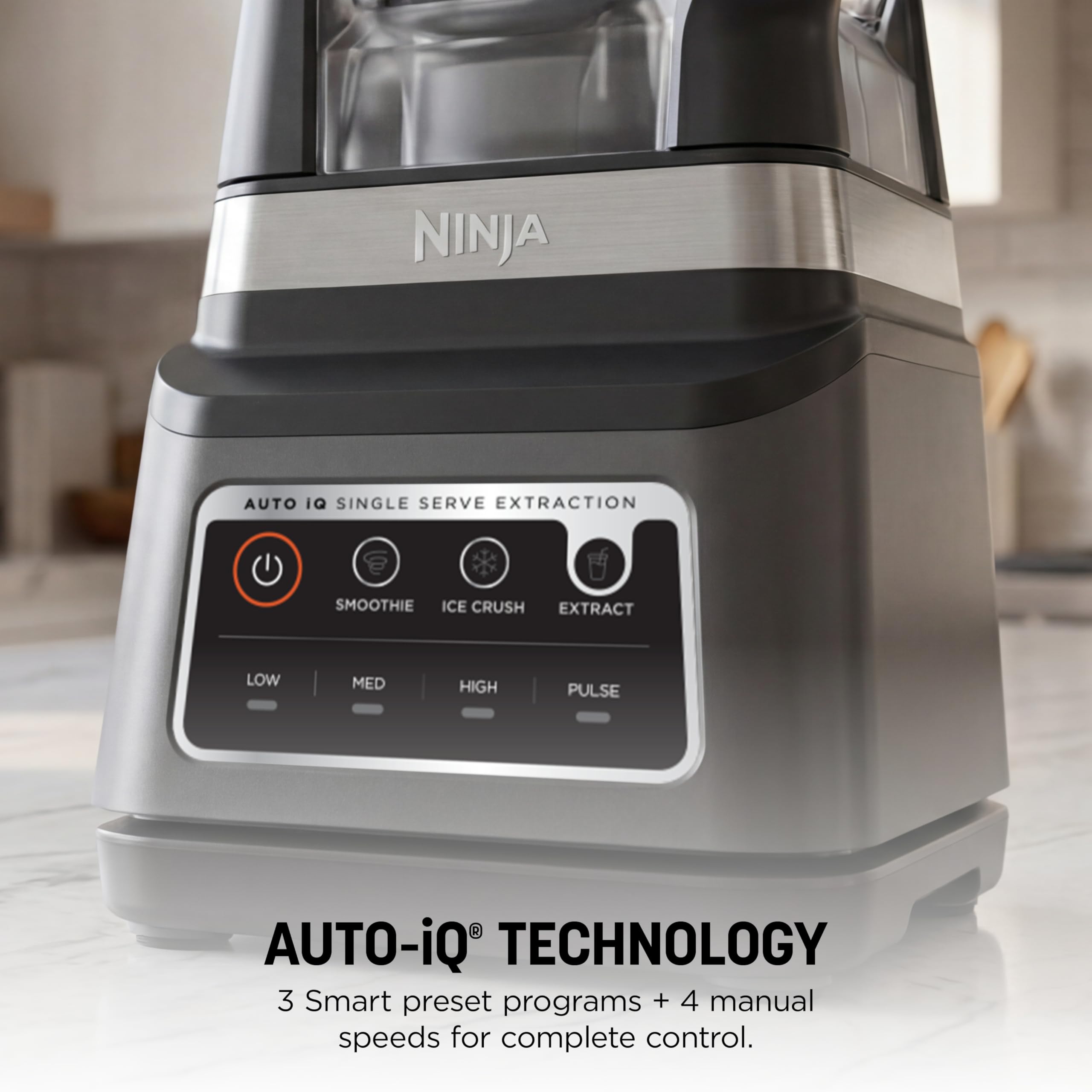 3 VERSATILE FUNCTIONS: 3 preset Auto-iQ programs allow you to create smoothies, frozen drinks, and nutrient extractions, all at the touch of a button. Extract a drink containing vitamins and nutrients from fruits and vegetables.