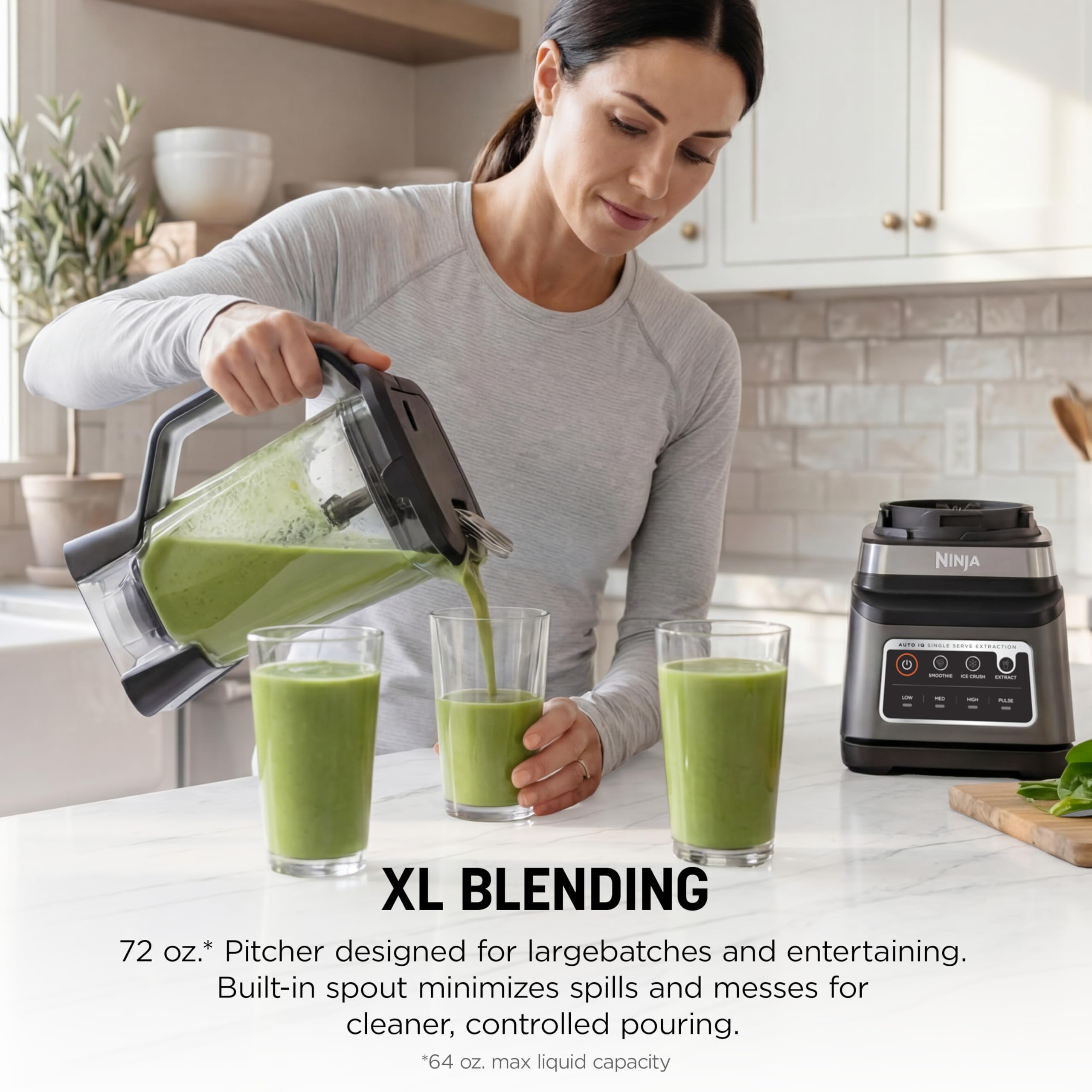 XL BLENDING CAPACITY: The 72-oz. Total Crushing Pitcher is great for making large batches for the whole family. (64-oz. max liquid capacity.)