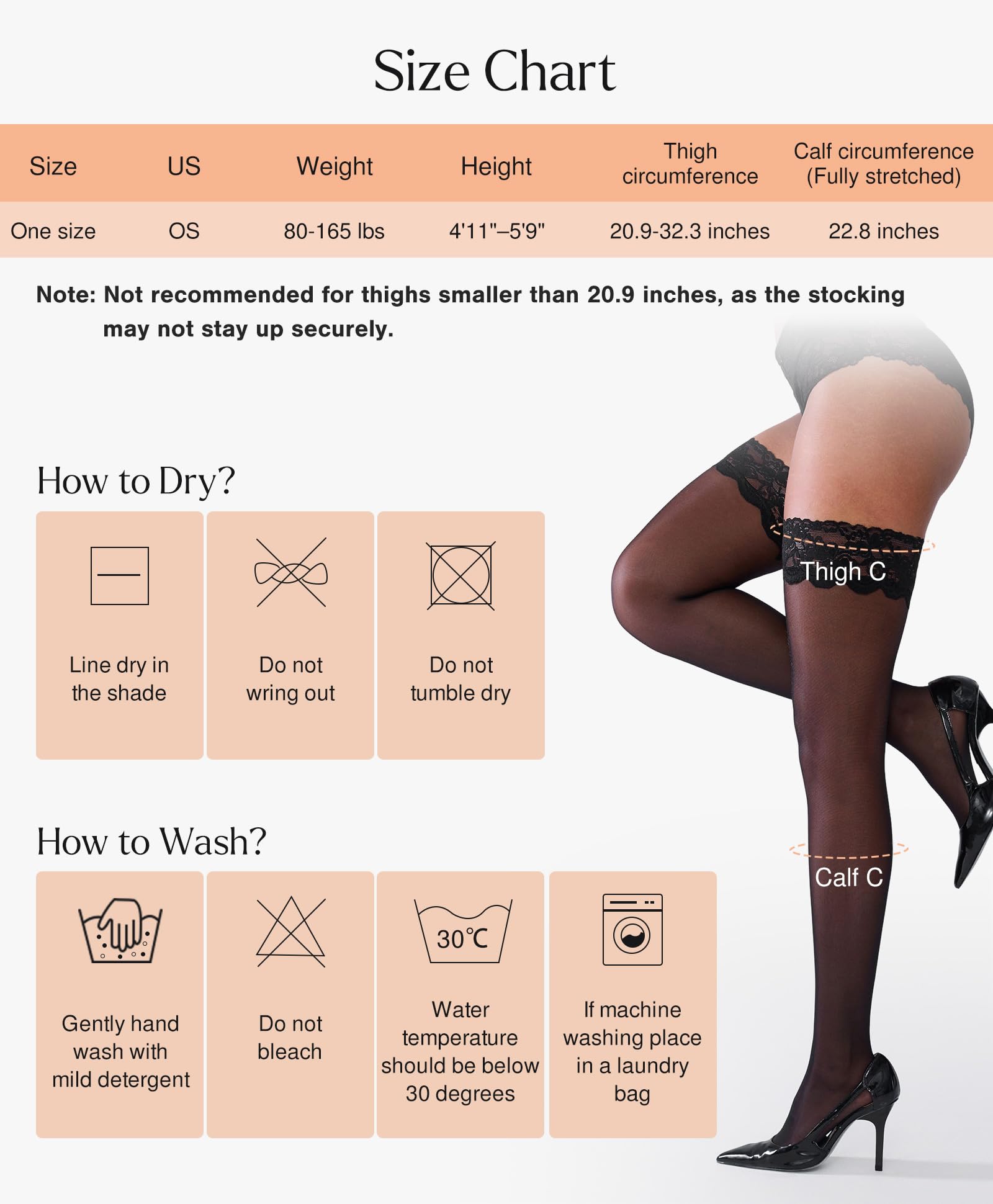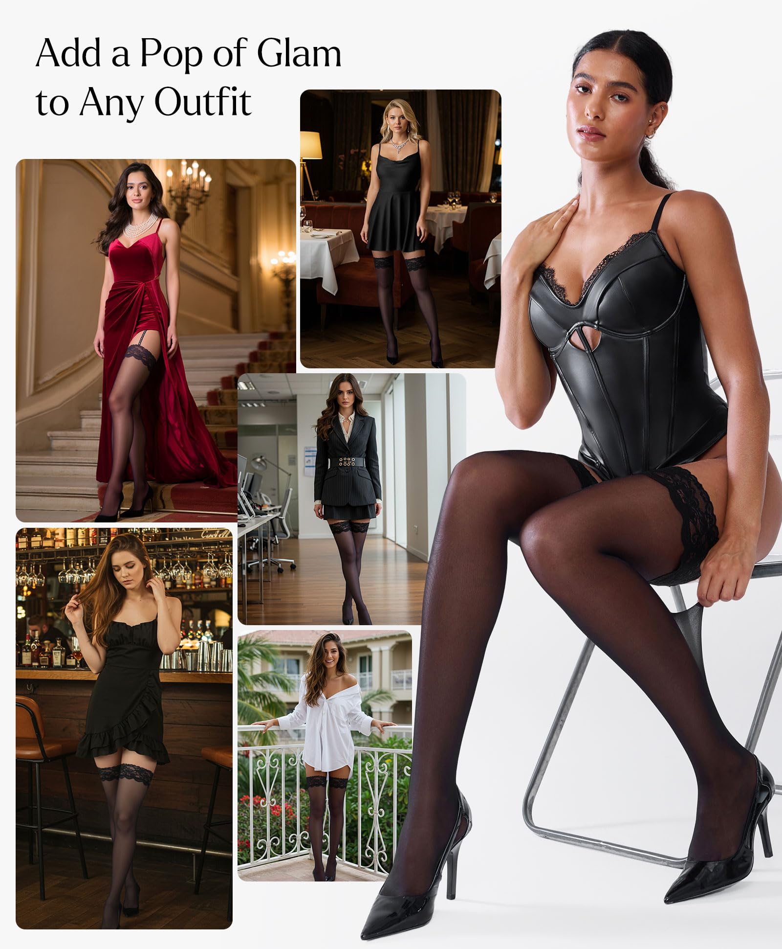 Stay Up Design with Double Silicone Band: The upgraded double silicone inner band holds the stockings securely in place without slipping or digging into your skin. The enhanced lace top adds both elegance and flexibility for a secure and comfortable fit