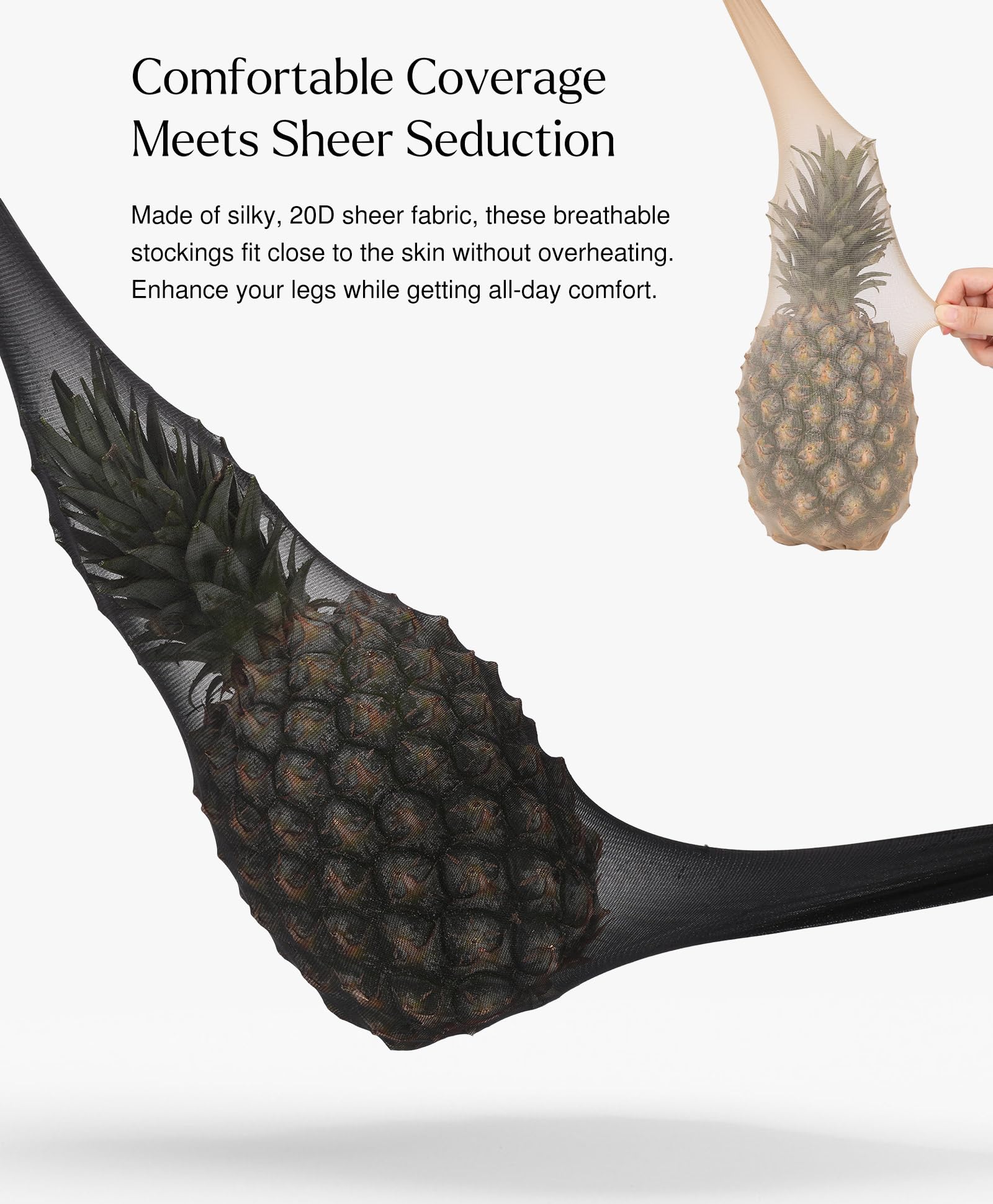 Luxurious Silky Feel: The soft and smooth fabric offers a rich, comfortable touch that feels like a second skin. These stockings provide an elegant fit for all shapes and sizes, giving you lasting comfort throughout the day