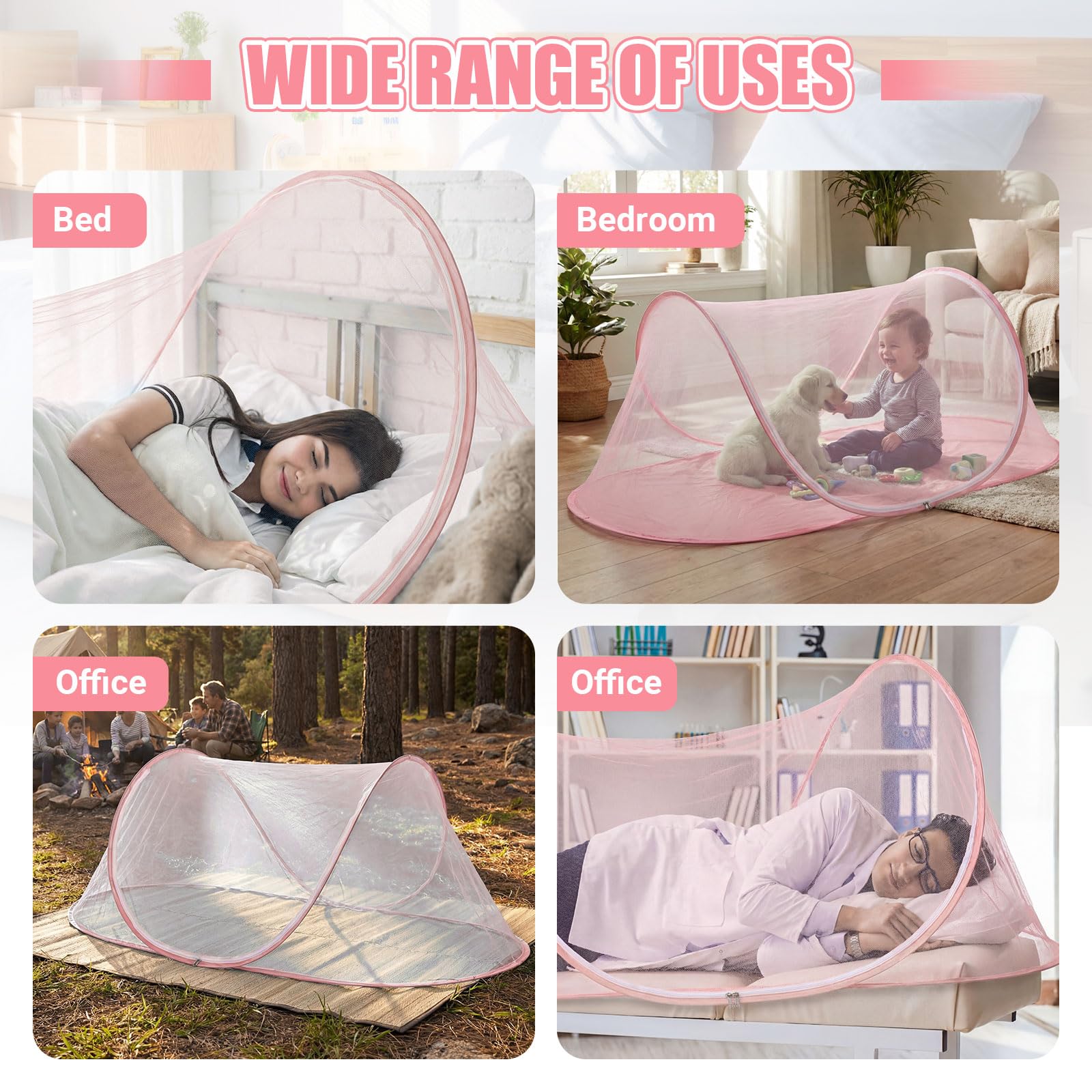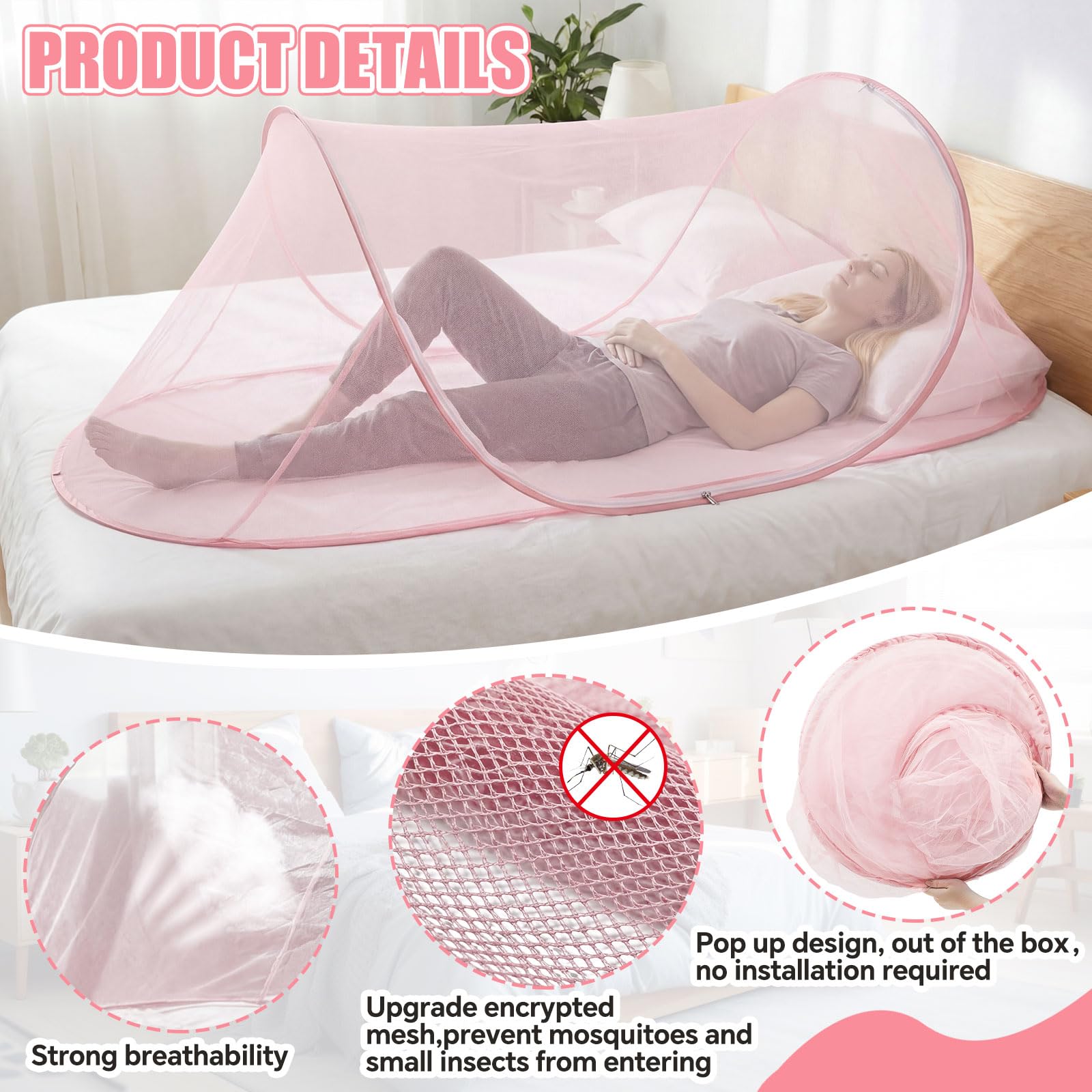 Efficient Mosquito and Insect Prevention: the polyester fiber construction of this mosquito net offers protection against mosquitoes, and other insects, the fully enclosed design with zipper ensures comprehensive coverage, not only providing a peaceful night's sleep, but also protecting you from potential disease vectors