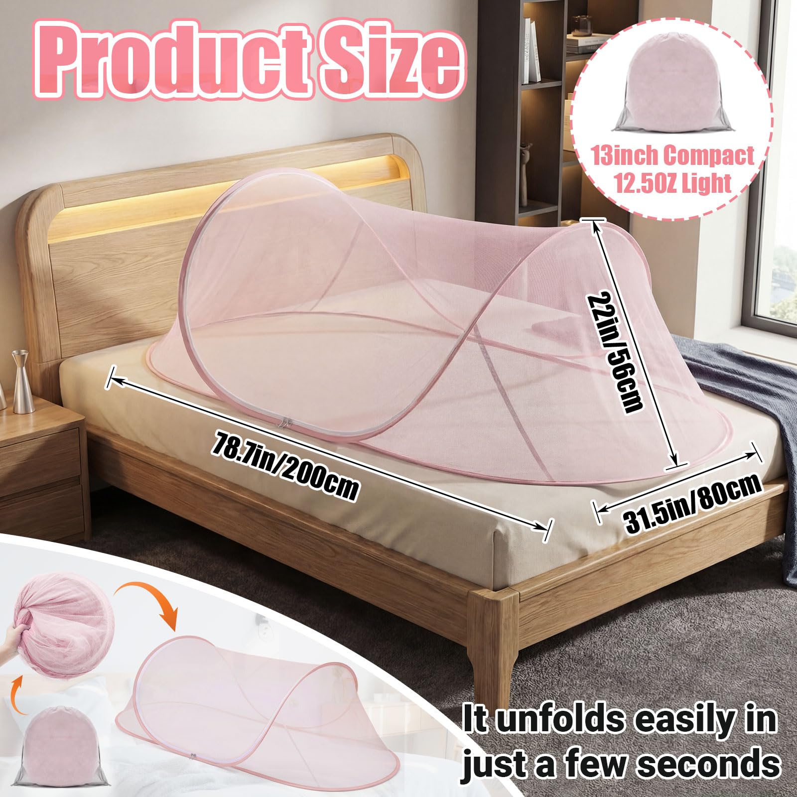 Features: This mosquito net is light in weight, making it effortless to carry around, whether you go planning a camping trip, it easily fits into any suitcase. These pop up mosquito nets have an understated black color, seamlessly blending into your decor. Specifications: Material: polyester fiber Color: pink Size: about 78.7 x 31.5 x 22 inches/200 x 80 x 56 cm Package includes: 1 x Mosquito net Notes: Manual measurement, please allow slight errors on size. The color may exist a slight difference due to different screen displays