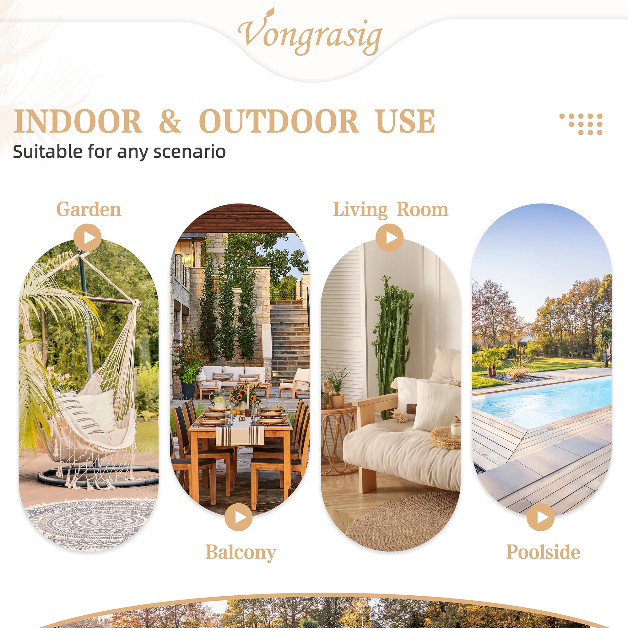 Hand-Woven PE Rattan: We use premium handwoven PE wicker for this oval basket chair. The wicker is sturdy and not easy to break which guarantees this set will last longer, suitable for outdoor garden, lawn, terrace, pool, coffee time and reading time.