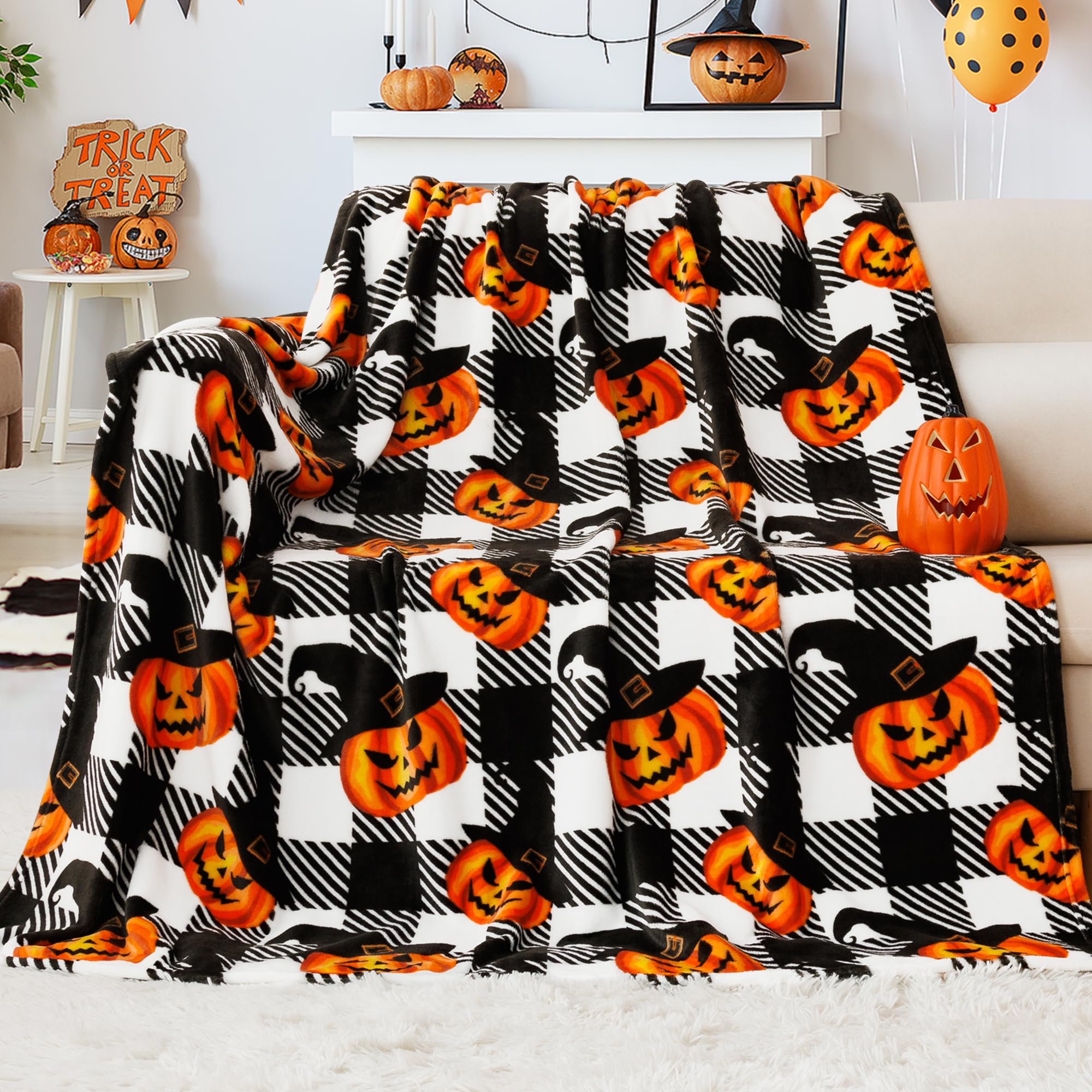 Halloween Blanket: The soft throw blanket uses healthy and environmentally friendly printing and dyeing technology, which does not fade and does not pilling. This is a very delicate fleece blanket, the fabric of halloween blanket is soft.