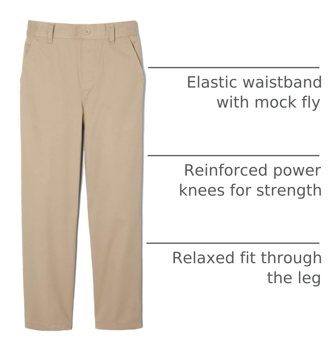 Description These French Toast Boys Pull-On School Uniform Pants are made to match the energy of growing boys while meeting the practical needs of parents and caregivers. Whether it's for the first day of kindergarten, a school recital, or simply everyday classroom wear, these pants are designed to keep him looking sharp and feeling comfortable from morning to night. Made from a soft stretch cotton-blend twill, they move easily with every hop, skip, and jump. Reinforced Power Kneesยฎ mean theyโll last through recess and beyond, while the mock fly and non-functional front button give the tailored appearance of traditional trousers with none of the struggle. The elastic back waistband allows for pull-on ease, making these pants a great option for kids still learning to dress themselvesโor for busy mornings when every second counts. Featuring functional belt loops, front slash pockets, and a rear welt pocket, these pants blend uniform-ready style with everyday utility. Parents will love that theyโre machine washable, wrinkle-resistant, and built to last. Kids will love the comfort, flexibility, and no-fuss fit. Perfect for school uniforms, picture day outfits, holiday events, or family celebrations, these trousers are also ideal for any occasion where comfort and polish matter. Call them slacks, school pants, chinos, or dress pantsโwhatever you name them, these are a wardrobe essential for any young boy.