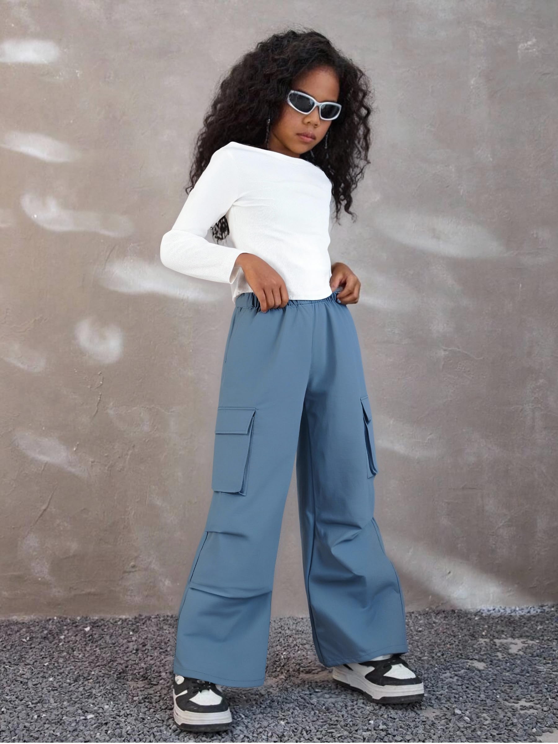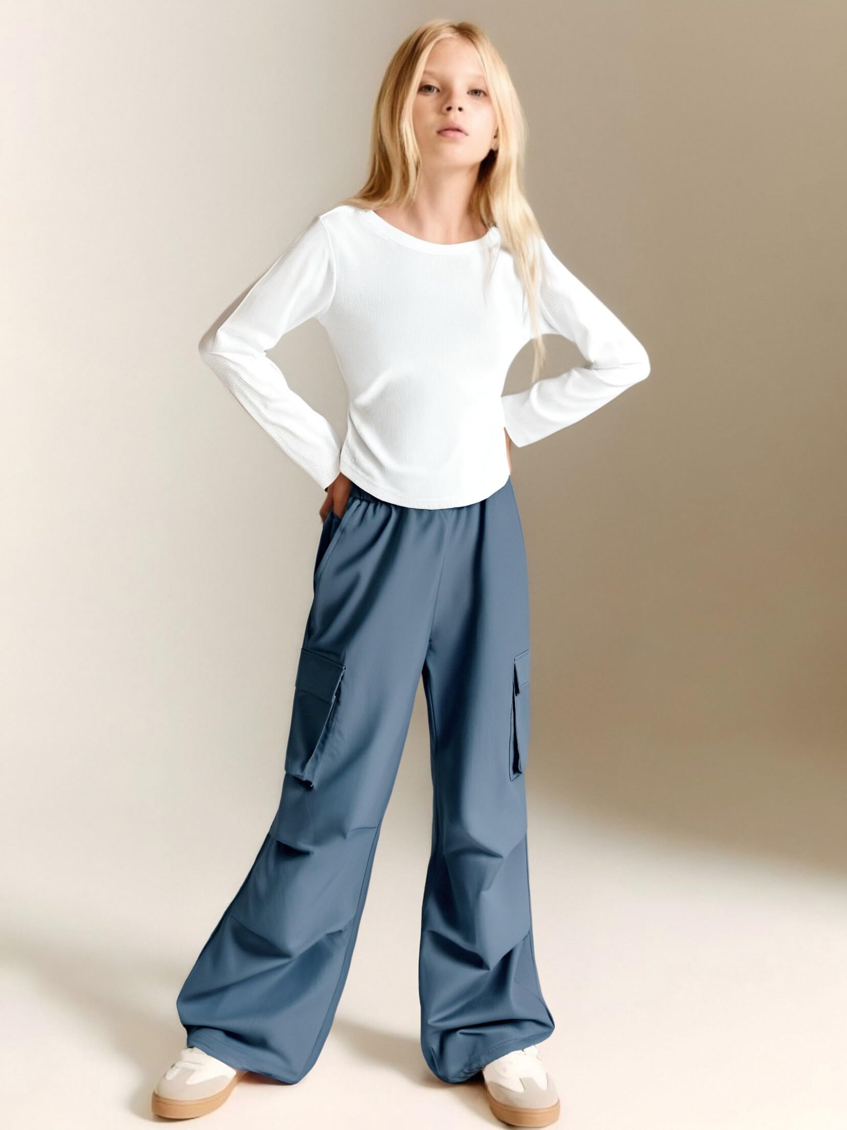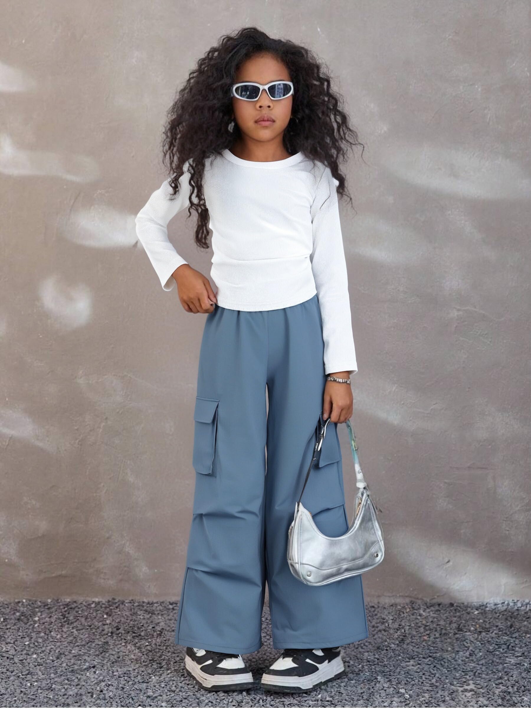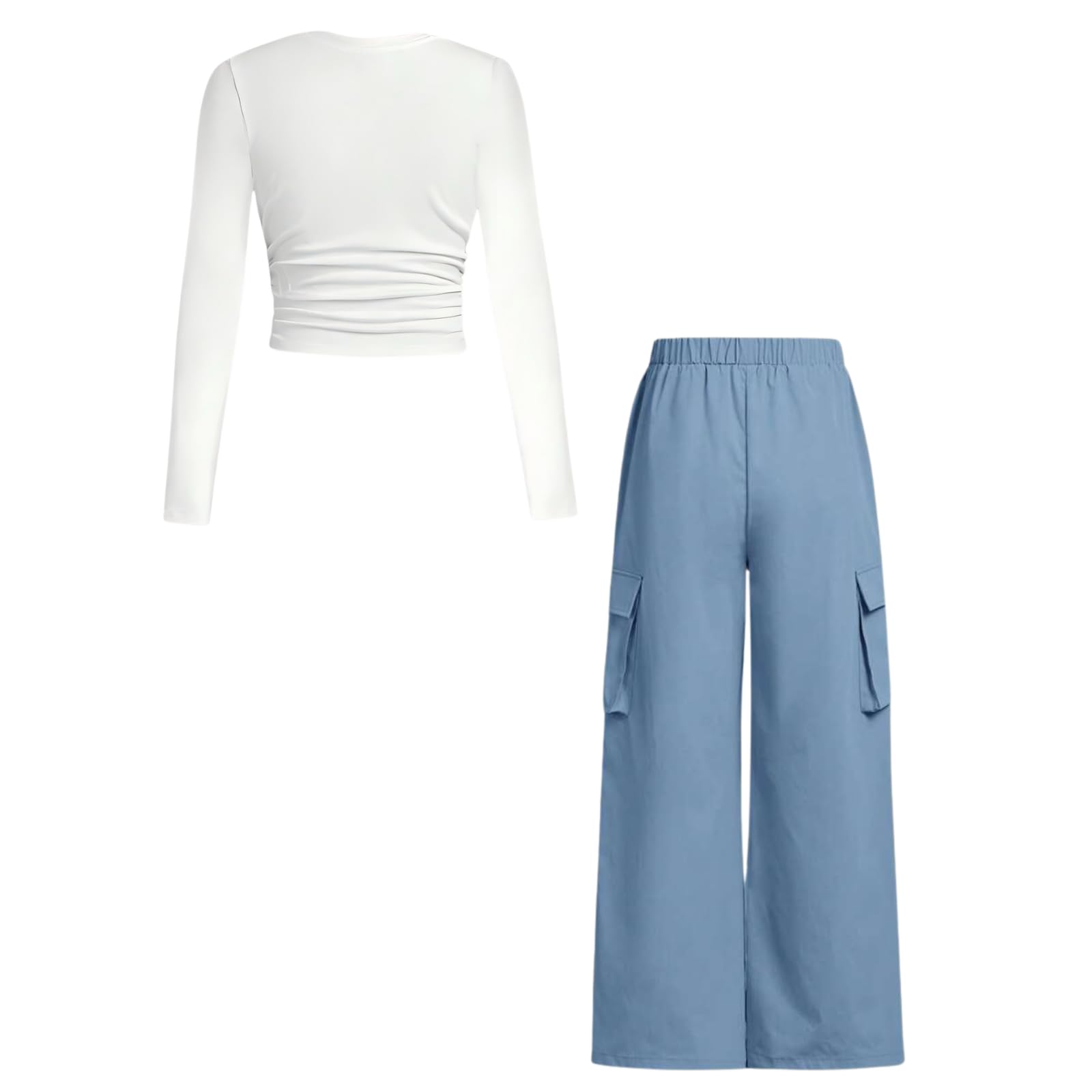 👖 Trendy Yet Practical – The ruched long sleeve tee pairs perfectly with the high-waisted cargo joggers, creating a cute outfit for girls who love both fashion and function.